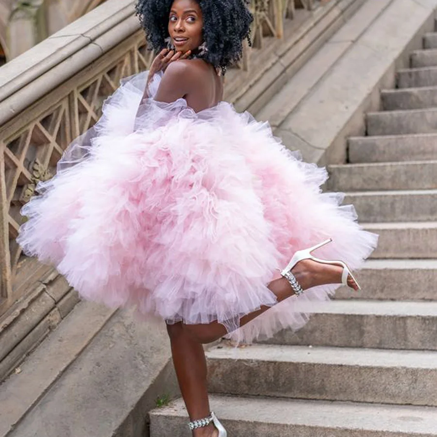 Летние розовые короткие тюлевые платья Пышное с оборками, женские платья, Симпатичные 2020, свободные милые платья