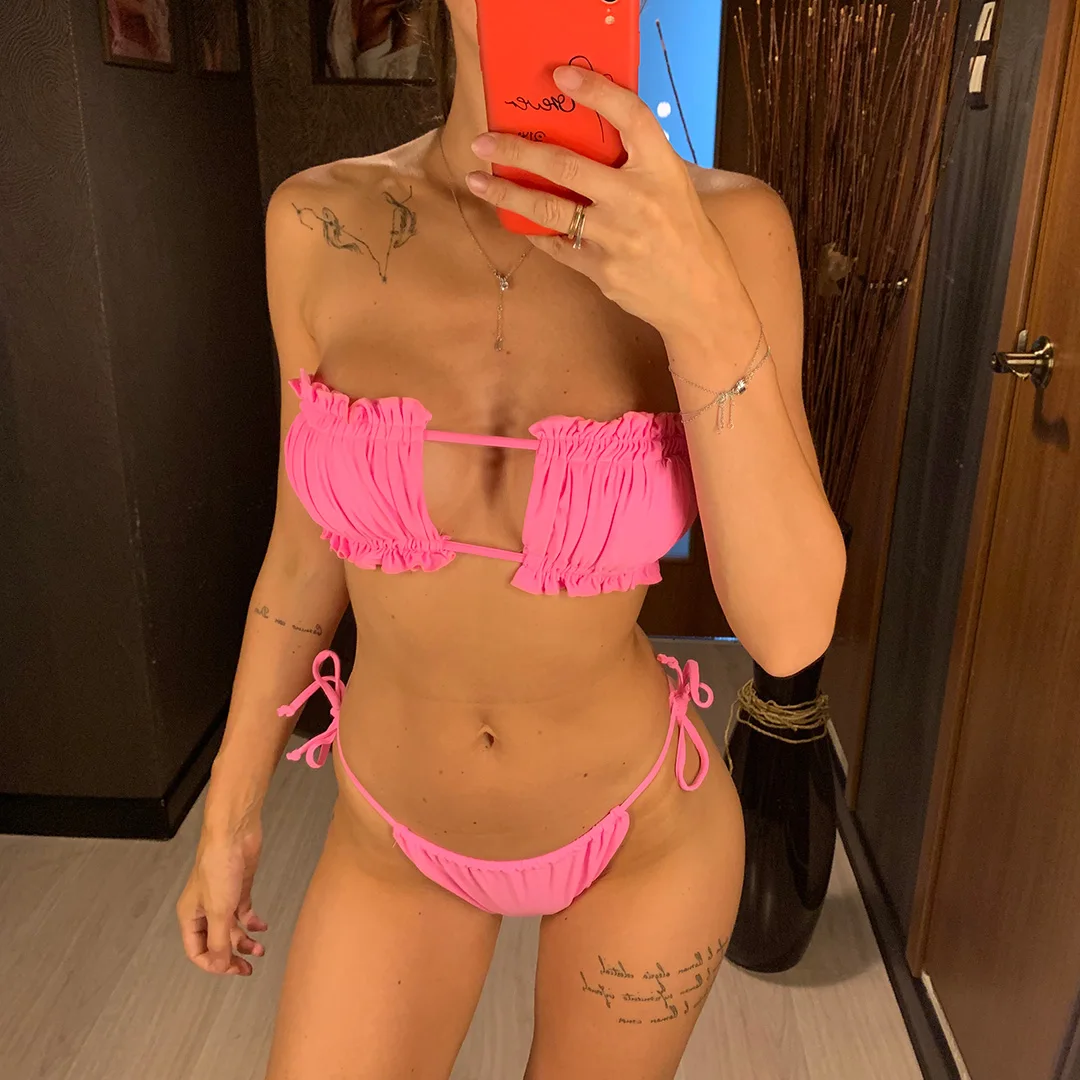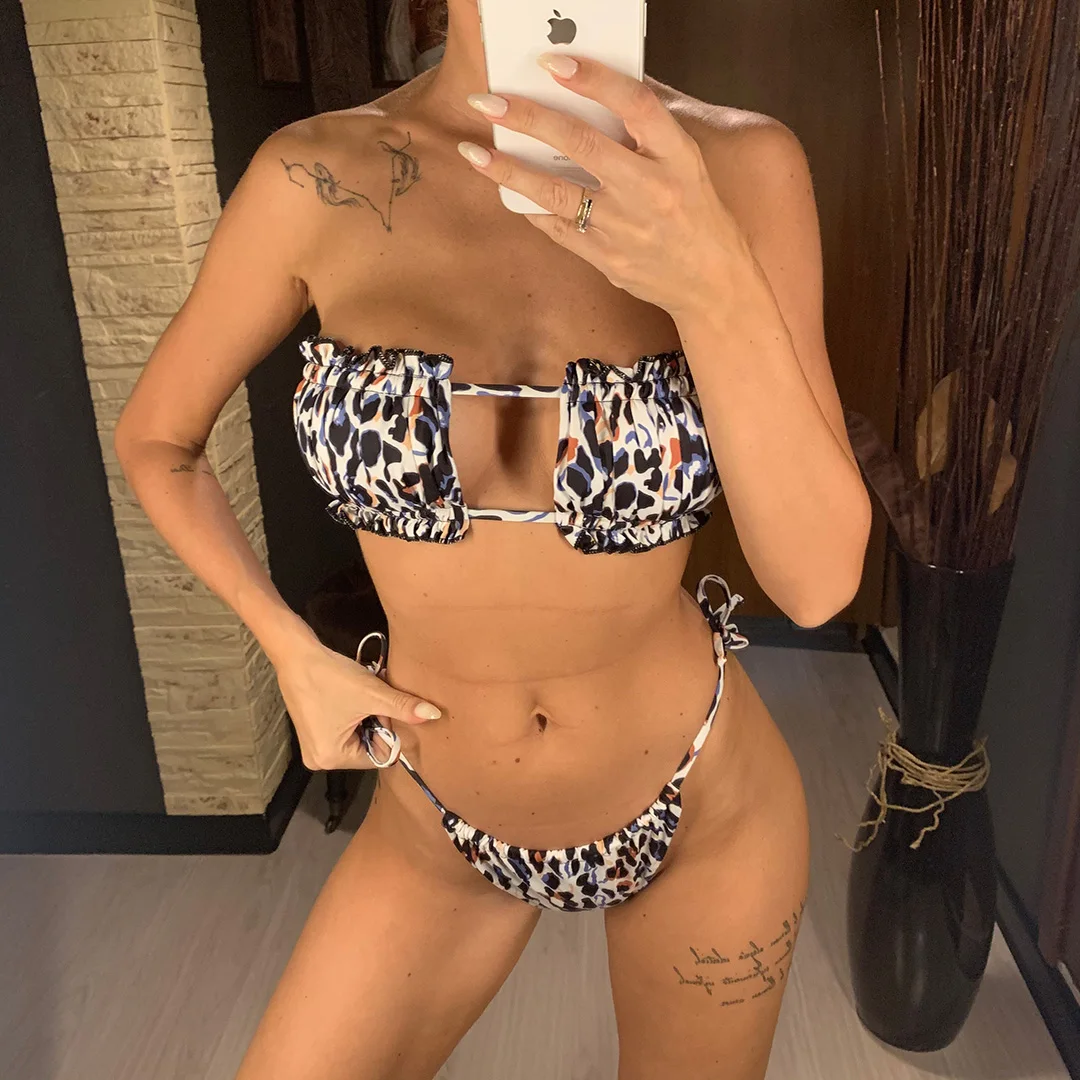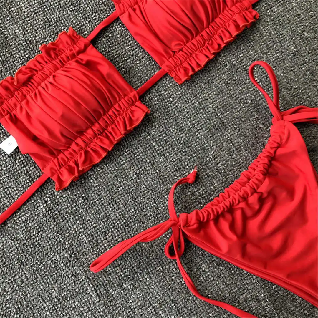 Новый сексуальный бандо в горошек Бикини 2021 купальник женский купальник комплект из двух частей бикини плиссированный купальный костюм V1242GL