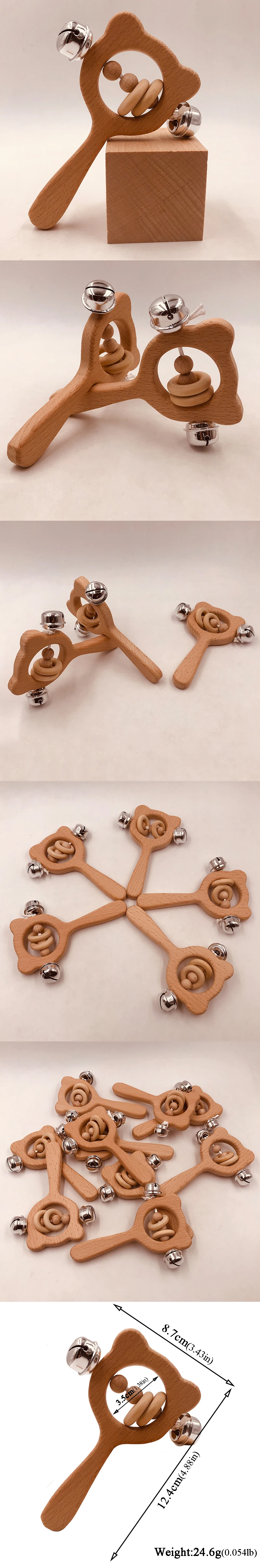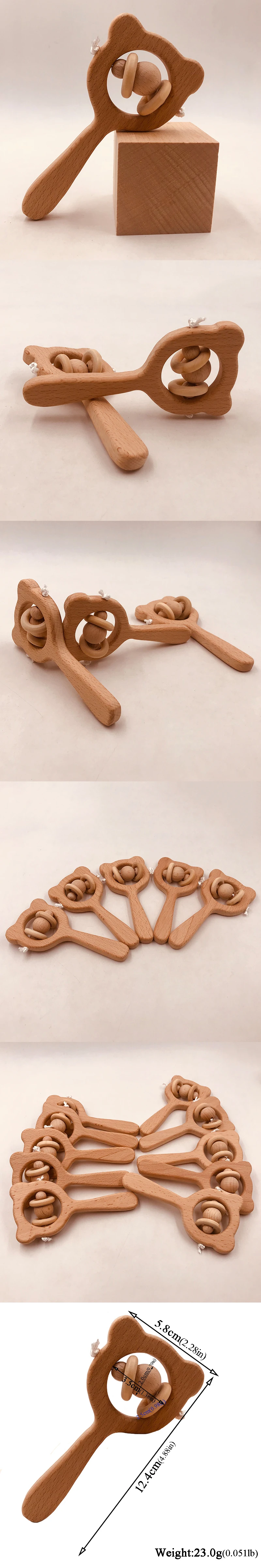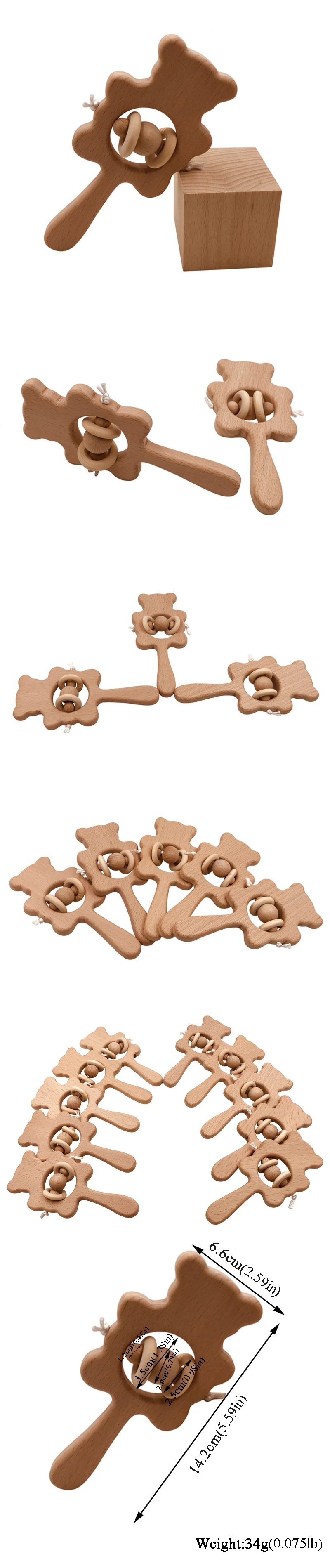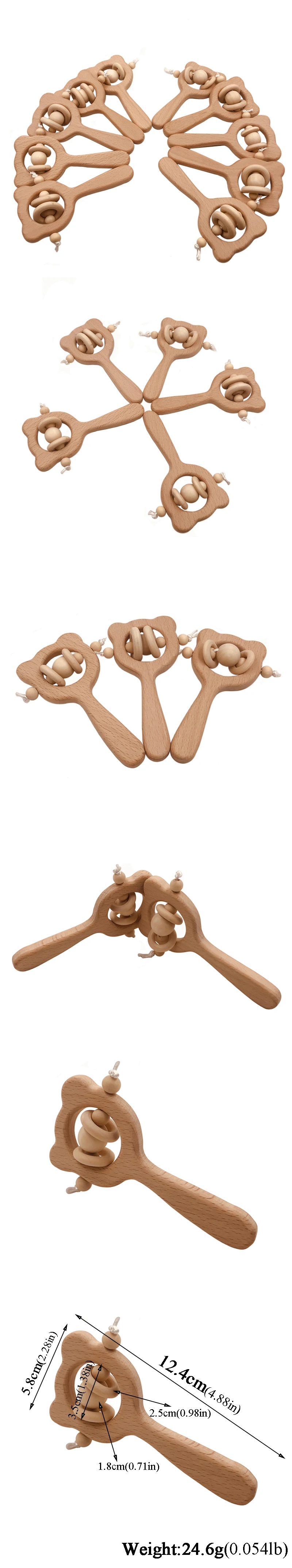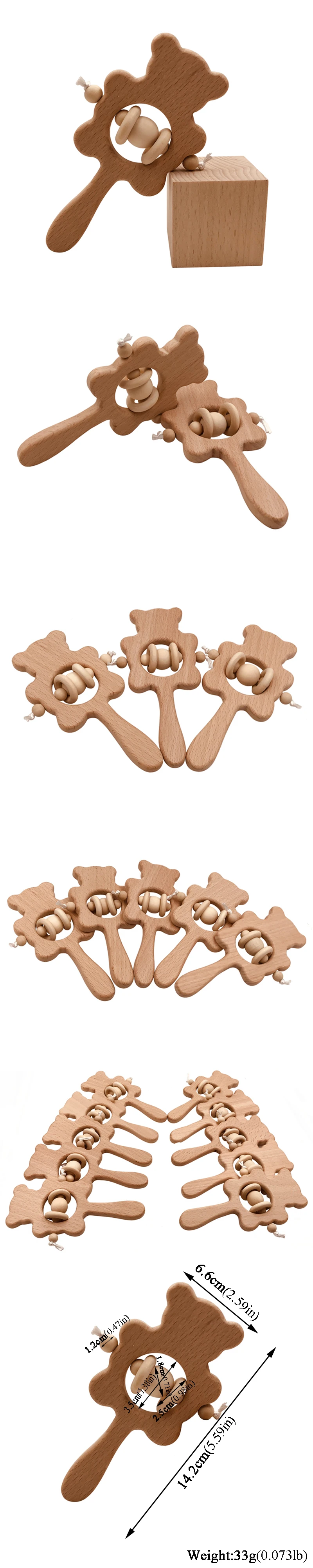 Coskiss детский Прорезыватель для зубов, деревянный косая погремушка с медведем, естественный захват для прорезывания зубов, игрушечный детский душ подарок для малышей, подарок для новорожденных