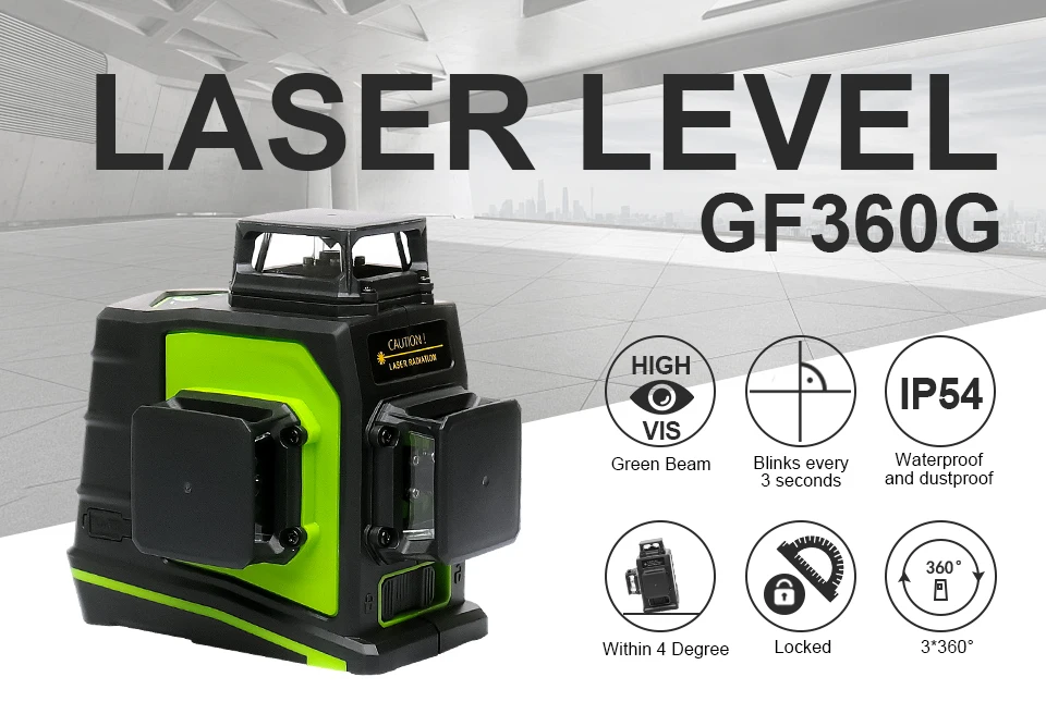 Лазерный уровень HUEPAR GF360, самонивелирующийся 12-линейный зеленый луч, вертикальный и горизонтальный высокоточный, 360
