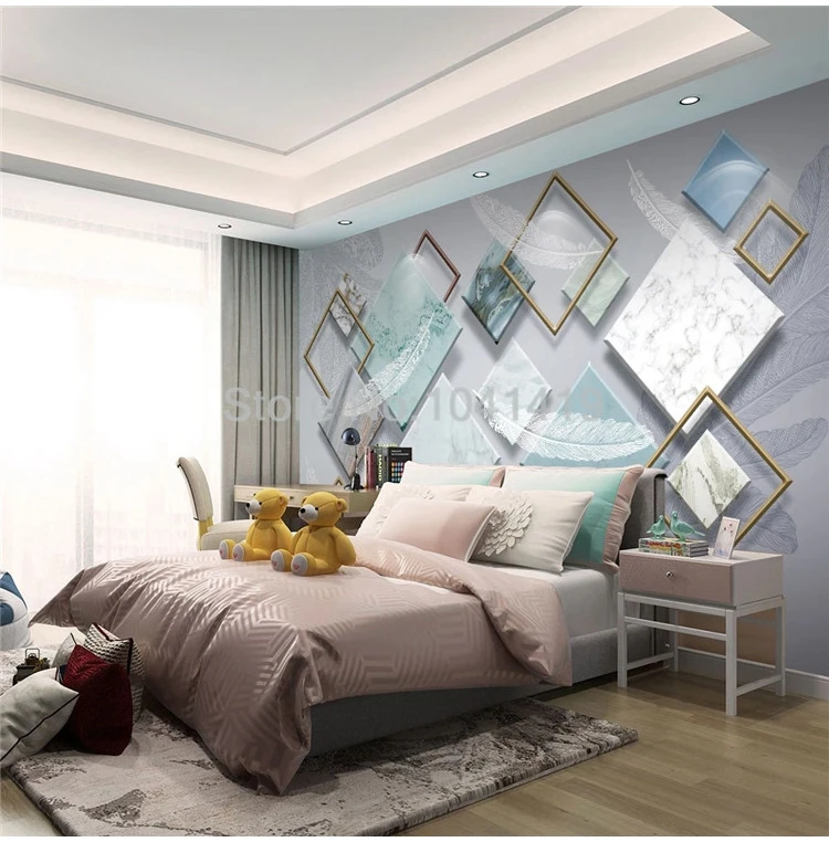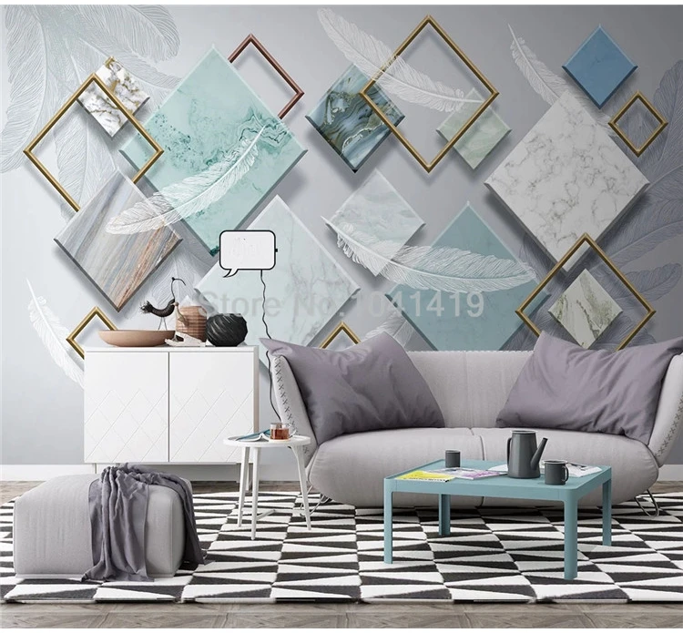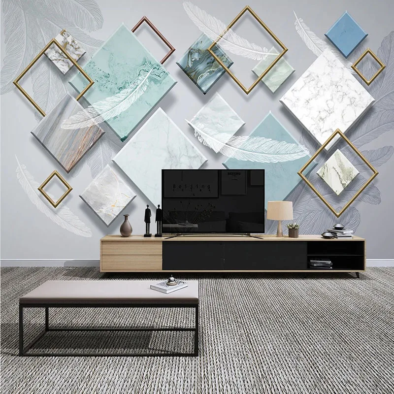 Настенные обои на заказ, Современные Геометрические обои с белыми перьями, Фреска для гостиной, ТВ, дивана, спальни, домашний декор, настенные росписи, обои 3 D