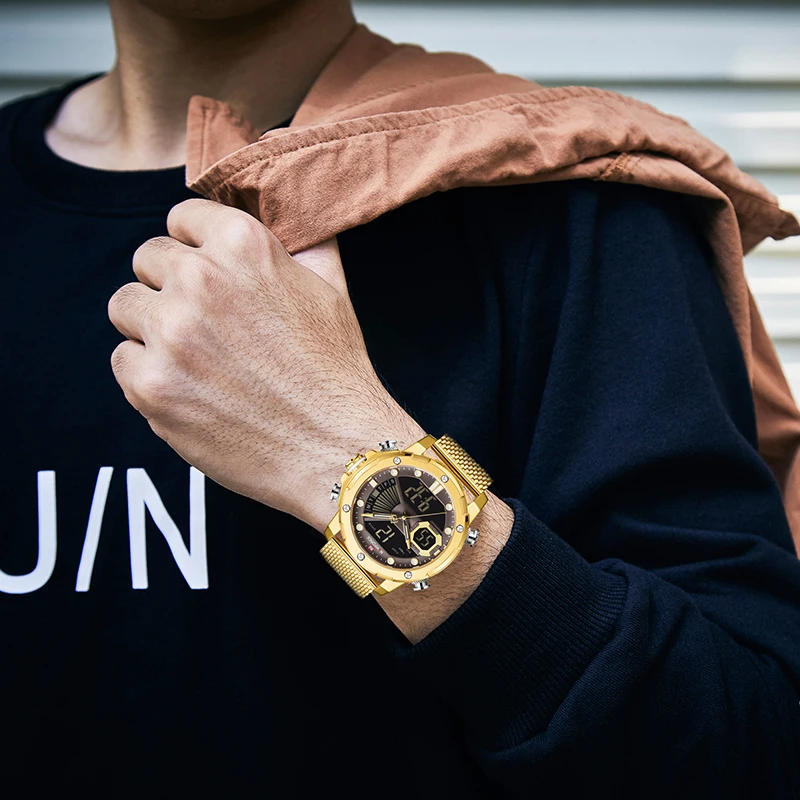 NAVIFORCE мужские спортивные часы, роскошные золотые кварцевые часы...
