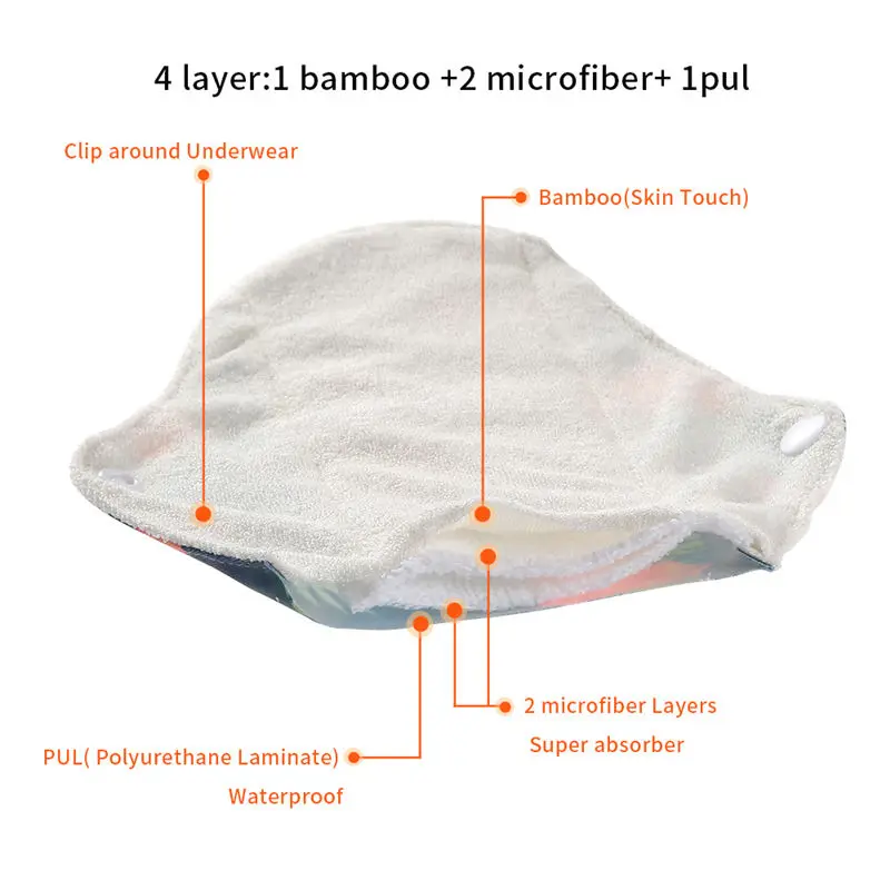 Прокладки гигиенические многоразовые с бамбуковым углем, материал д...