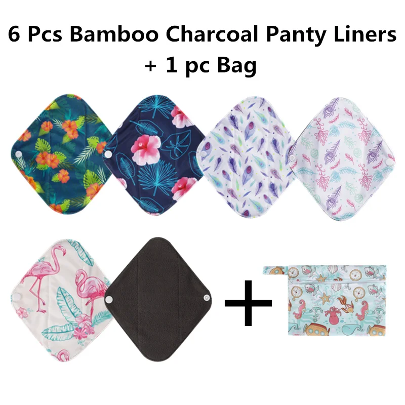 7 шт. в комплекте 1 шт., мини-влажный мешок + 6 шт., 8-дюймовые угольные бамбуковые гигиенические прокладки, тканевая менструальная прокладка, многоразовая гигиеническая прокладка