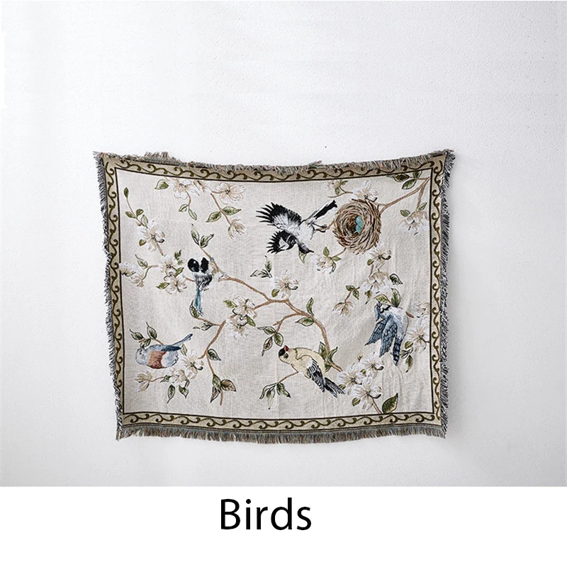 Классическое трикотажное одеяло с американскими цветами и птицами