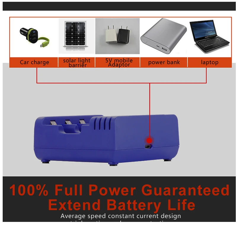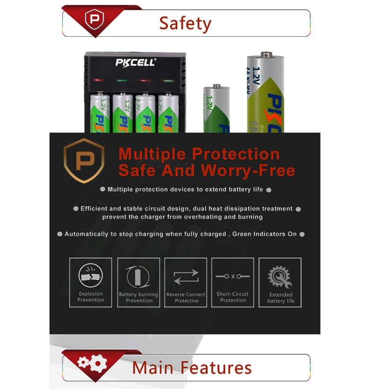 Тип батареи: 1,2 никель-металл-гидридный аккумулятор с напряжением AA 2600 мА/ч, Перезаряжаемые батареяМодель: ni-mh 1,2 V AA 2600mAhРазмер: AAНапряжение: 1,2 VНормальная емкость: 2600 мАчРазмер (макс.): Диаметр: 14,5 мм * Высота: 50,5 ммСтандартный ток заряда: 260 мА время: 15 чТок быстрой зарядки: 780 МА время: 4 чПрименение:Цифровая камера, портативное видео, игра, фонарик, пульт дистанционного управления, игрушка, MP3/MP4 плеер, электрическая бритва и т.д.Бренд: PKCELLОсобенности:1. Вход: 5 В/2A Micro USB2, выход: 1,53 в 0.4A * 43. Преобразование зарядных ламп: красный, зеленый4. Режим управления зарядкой (метод зарядки): Импульсный постоянный ток5, Размер: 86 мм * 71 мм * 36 мм (Д * Ш * В)6, вес: 67 г (без батарей и шнура питания)Преимущества характеристики:1, вход Micro USB2. Микрокомпьютер IC контролирует процесс зарядки: CC/CV/Trickle зарядка, чтобы убедиться, что аккумуляторПолностью заряжен и не перезаряжен; Каждый слот управляется независимо;3, каждый разъем соответствует красному и зеленому двухцветному СВЕТОДИОДНЫЙ дисплею для зарядкиСтатус в режиме реального времени.4. Используйте технологию контроля отрицательного напряжения для повышения эффективности зарядки.