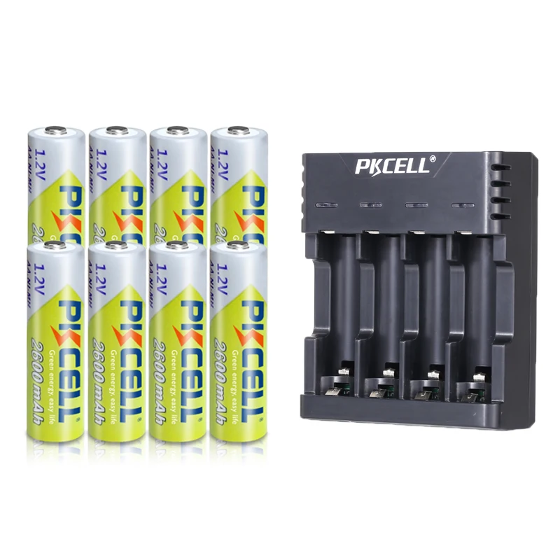 8 шт. батарейки PKCELL NIMH AA 2600 мАч 1,2 в 2A Ni-MH AA аккумуляторные батареи с NIMH зарядным устройством для 1-4 шт. AAAAA батареи