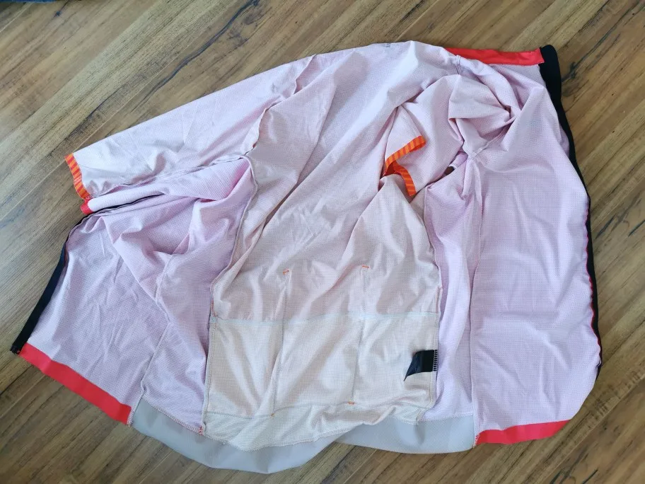 Подходит для размера L (191 см, 80 кг). Хорошая отделка, черная молния. На спине нет названия бренда. Ткань действительно тонкая. Этот трикотаж отлично подходит для летнего использования.