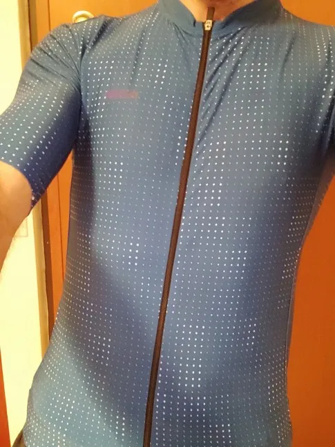 Я измерил 1,92 и вес 85 кг. Размер XL, хорошо подходит, но Размер L подходит больше. Зависит от вкуса каждого. Как вы видите на фотографиях, он плотный, но не замечал «давление». Размер L будет больше стиля aero. Muy-очень хорошее качество. У меня есть другие Aliexpres mallot: Spexcel, cheji. И этот находится на вершине вместе с Spexcel. Ткани, вырезы, молния. Очень, очень хорошо.