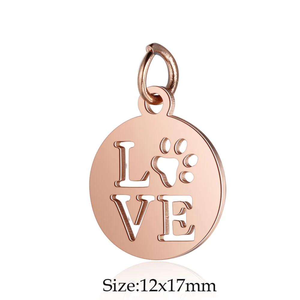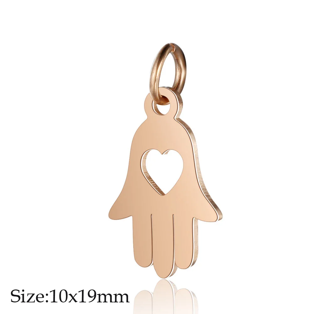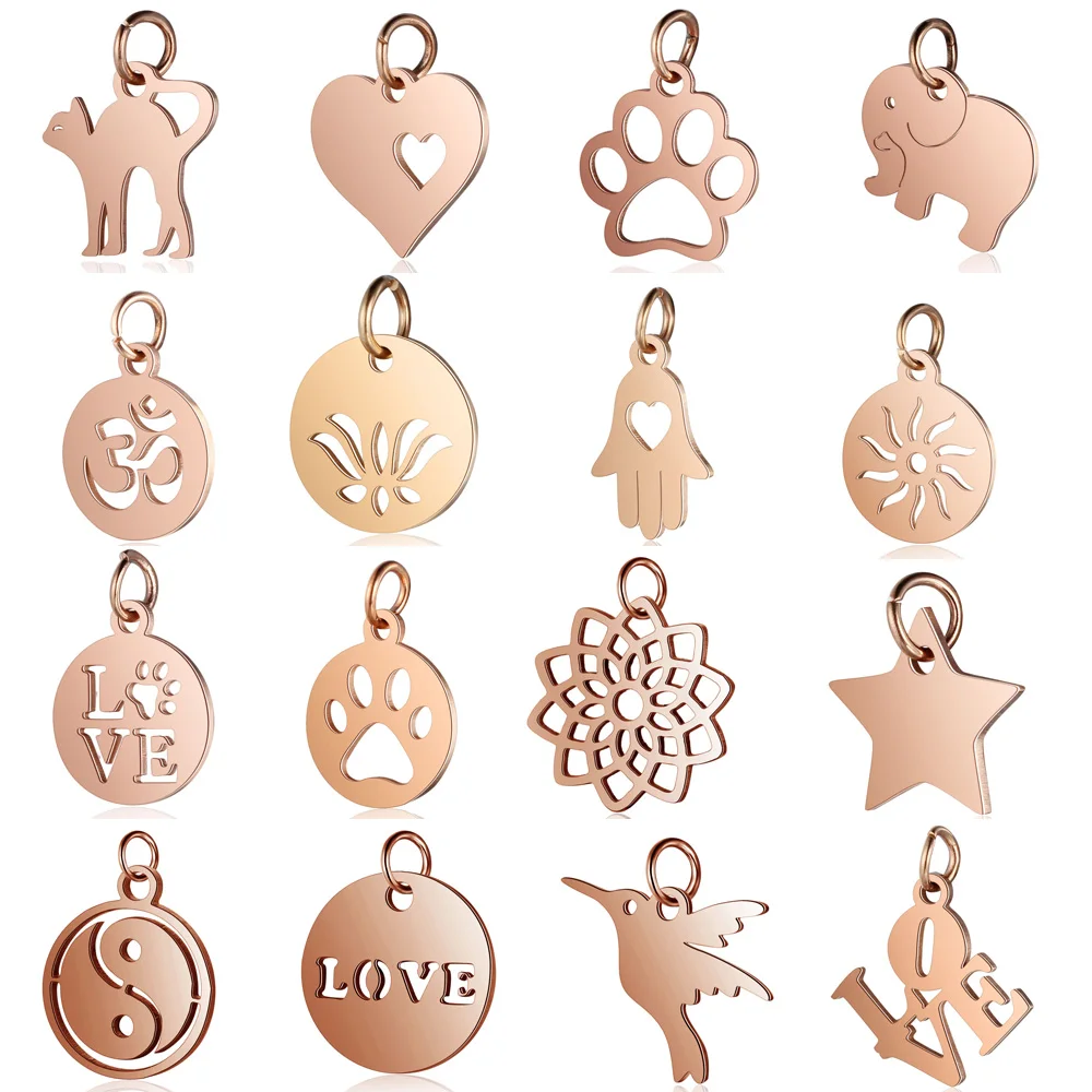 5 шт.лот, подвески цвета розового золота OM DIY, оптовая продажа, 100% нержавеющая сталь, сердце, собачья лапа, шарм, солнце, звезда, Hamsa, ручная бижутерия, подвеска
