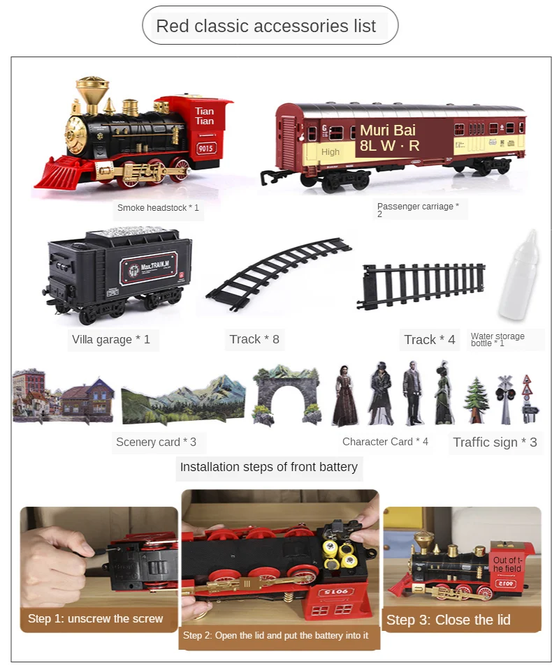 Классический моторизованный поезд Vihcle электрический игрушечный поезд, Набор железной дороги для самостоятельной сборки, динамические паровые поезда на радиоуправлении, электрическая игрушка для детей