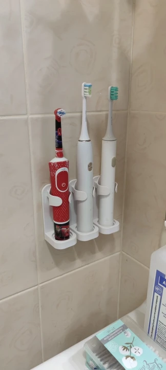 Кронштейн, предназначенный для электрических зубных щеток, удобно хранить, крепится к стене, не оставляет водяных пятен, легко моется