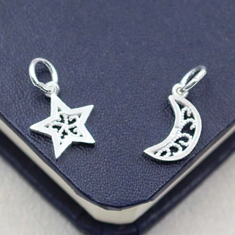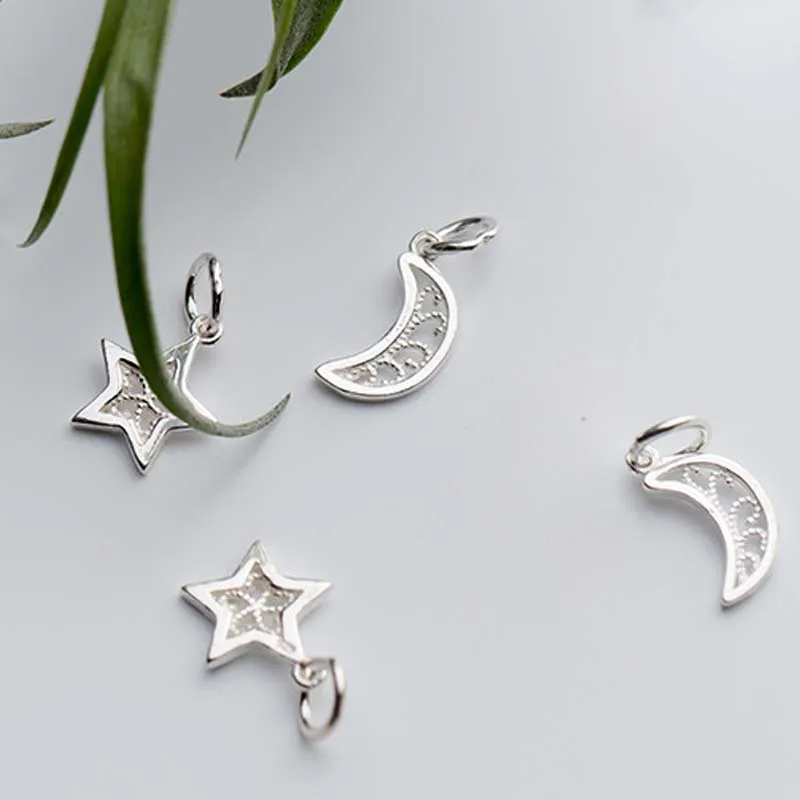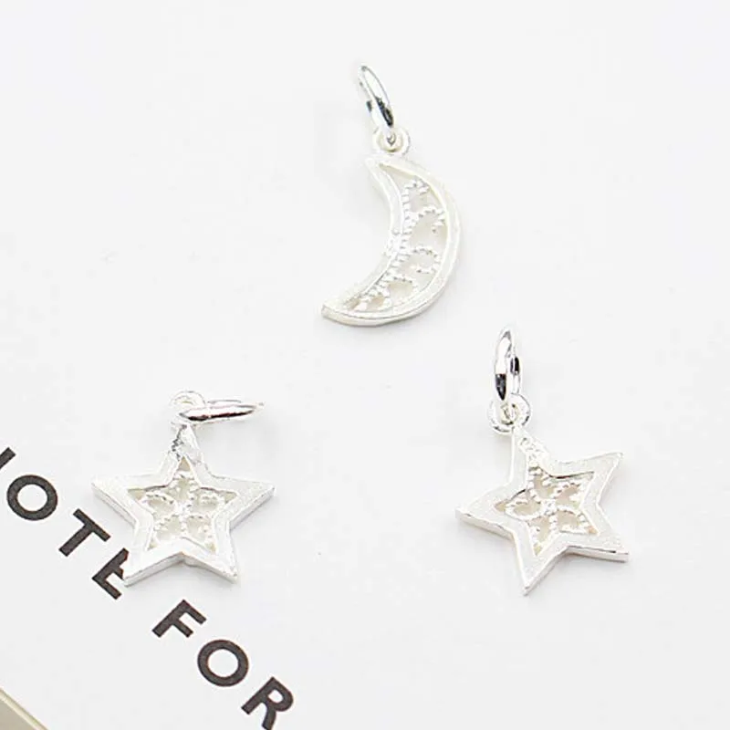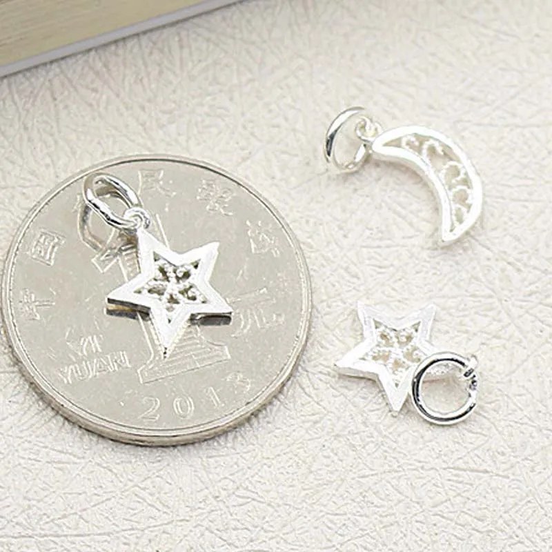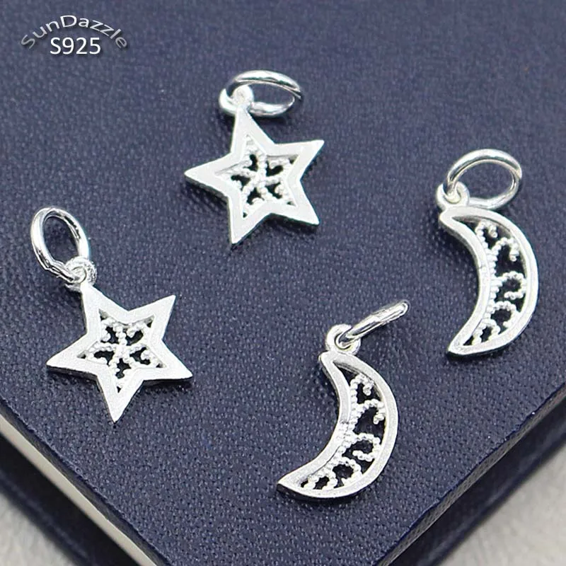 2 шт. подлинное Настоящее чистое Твердое Серебро 925 пробы подвеска Звезда Луна подвеска на ожерелье браслет ювелирные изделия фурнитура подвески