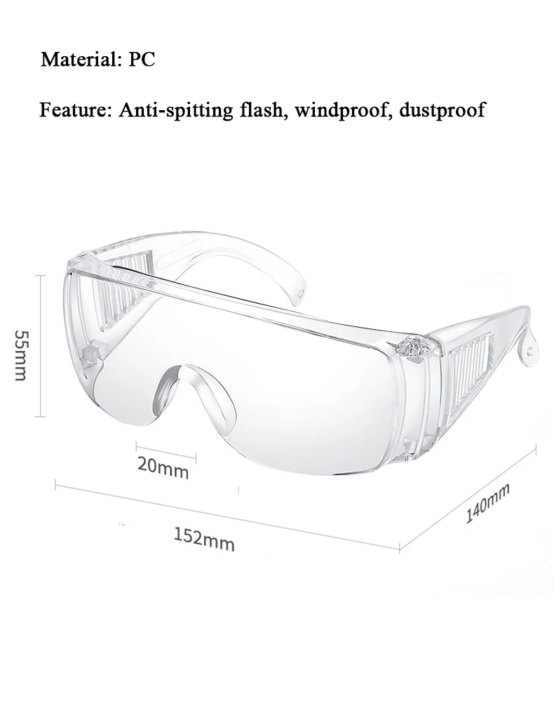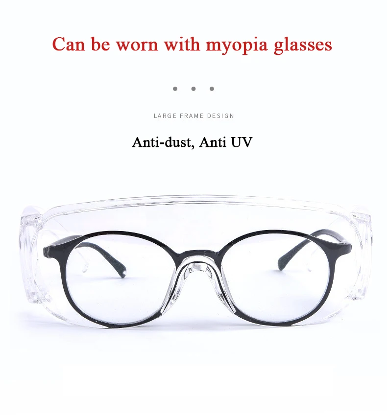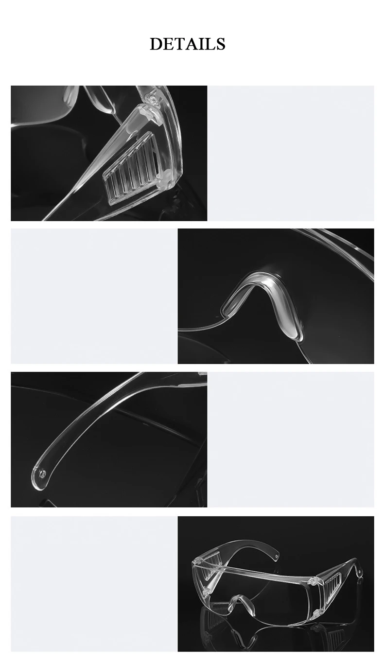 Характеристика:1. Мягкие внутри и складные зеркальные ножки, которые безопасны и не легко отвалятся.2. Отличная ударопрочность: Линзы изготовлены из полиэстераС отличной ударопрочностью.3. Водонепроницаемость и ударопрочность: очки водонепроницаемые и ударостойкие, блокируют слюну и капельки.4. Высокое качество: защитные очки 100% абсолютно новые и высококачественные, которые подходят для унисекс.Характеристики:Название: защитные очкиФункция: очки водонепроницаемые и ударостойкие, блокируют слюну и капельки.Упаковочный лист: