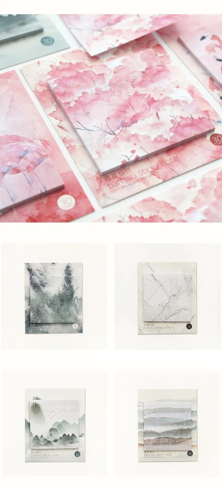 4 шт. INS Стиль бумаги для заметок на клейкой основе набор с цветным принтом с рисунком вишни для детей от Lotus Фламинго пальмовых листьев серые тона Мрамор Memo пост маркер его, офисные школьные A6365