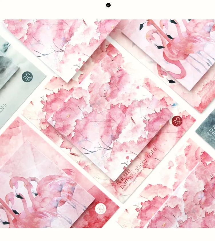Блокнот для заметок, самоклеящийся, с рисунком сакуры, фламинго