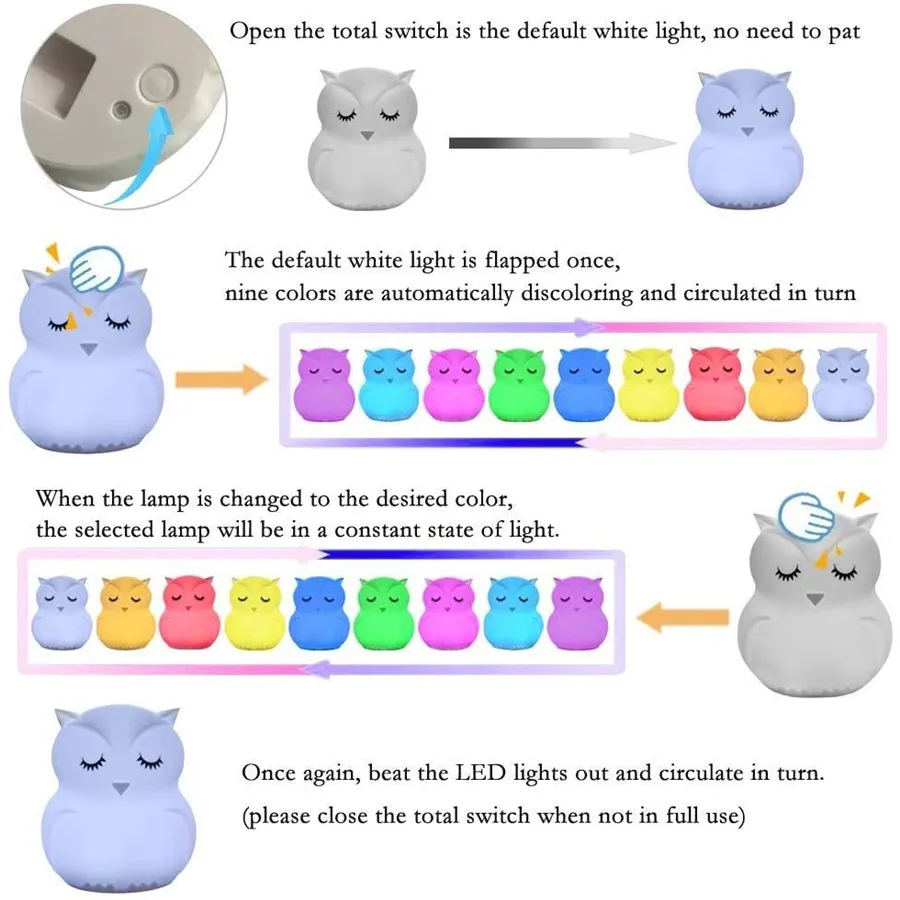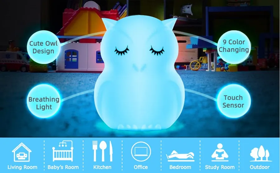 【Нежная Сова лампа】Основная часть этой очаровательной Сова Ночной светильник выполнен из высококачественного мягкого силикона (не содержит Бисфенол А), мягкая поверхность не повредит поверхности, подарок для ребенка, но очень приятна на ощупь. Высококачественный силиконовый материал обладает отличной эластичностью, благодаря чему милый Ночной светильник не будет легко повредиться или порваться.