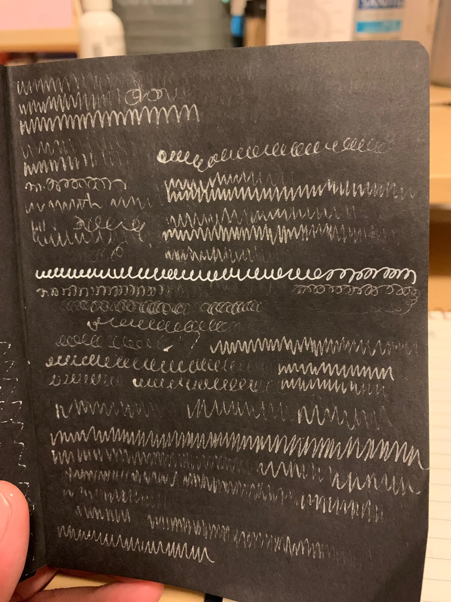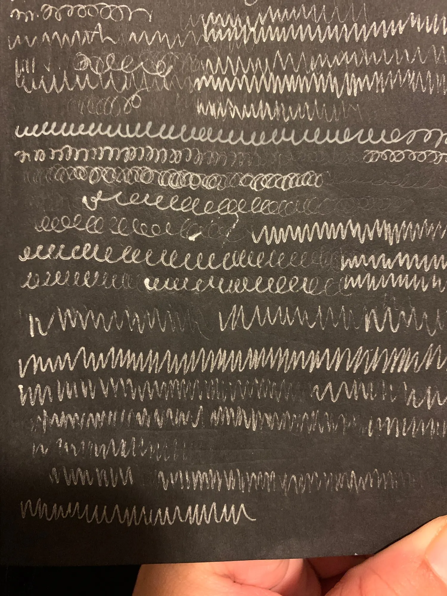 Прекрасно пишет, очень насыщено, хорошо видно на черной бумаге.