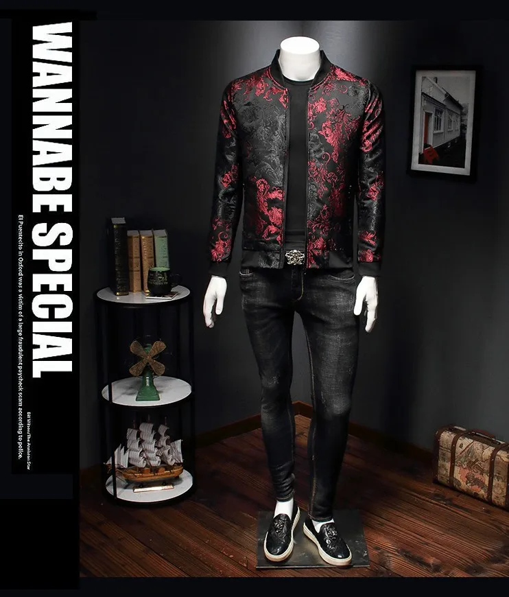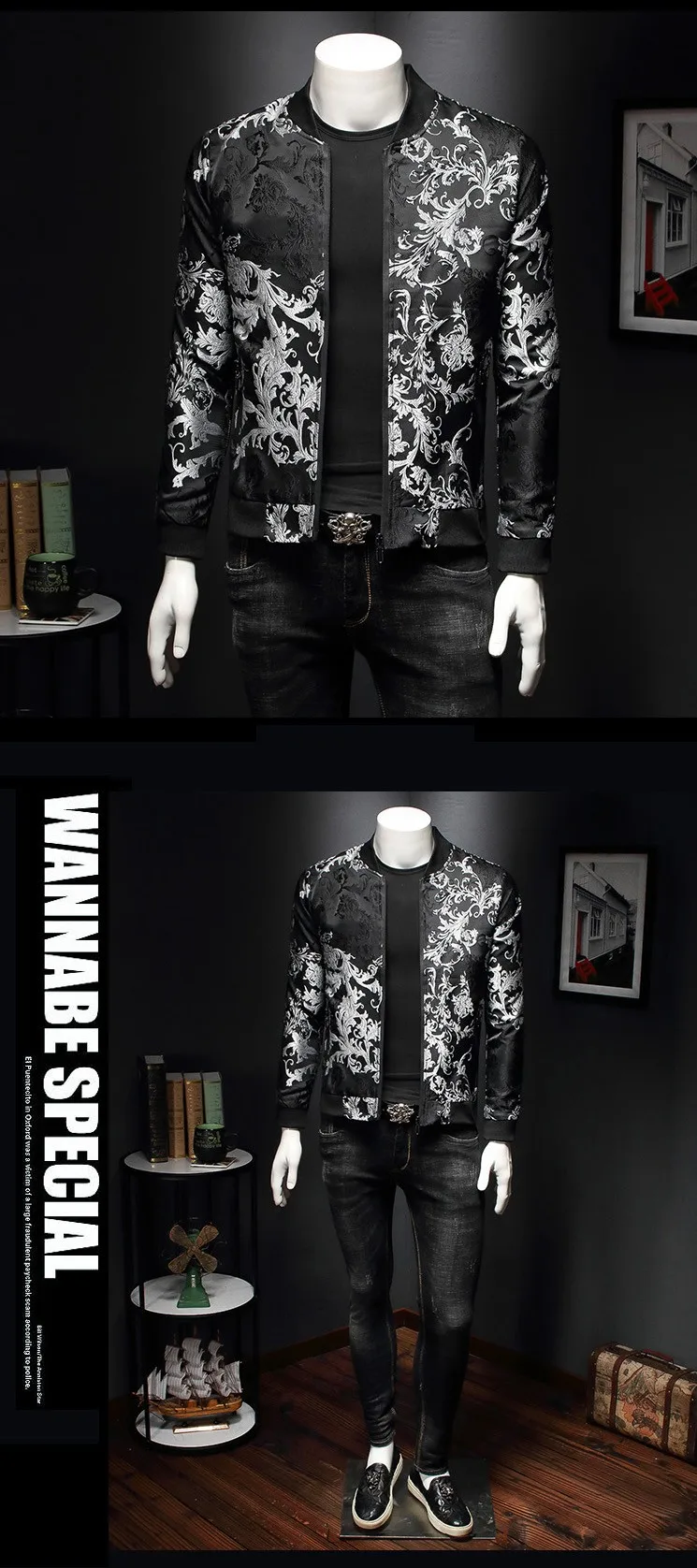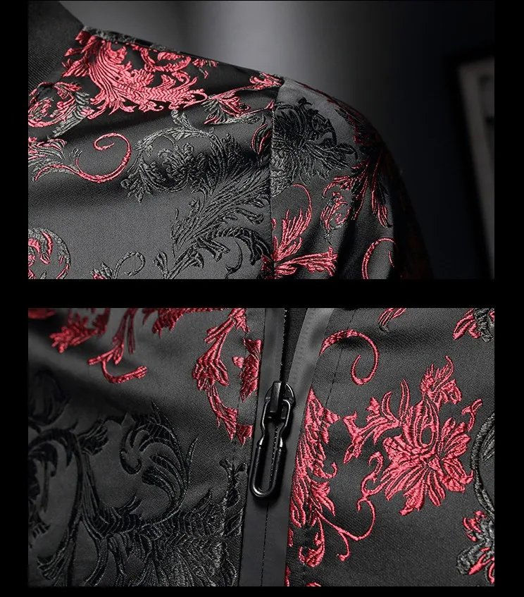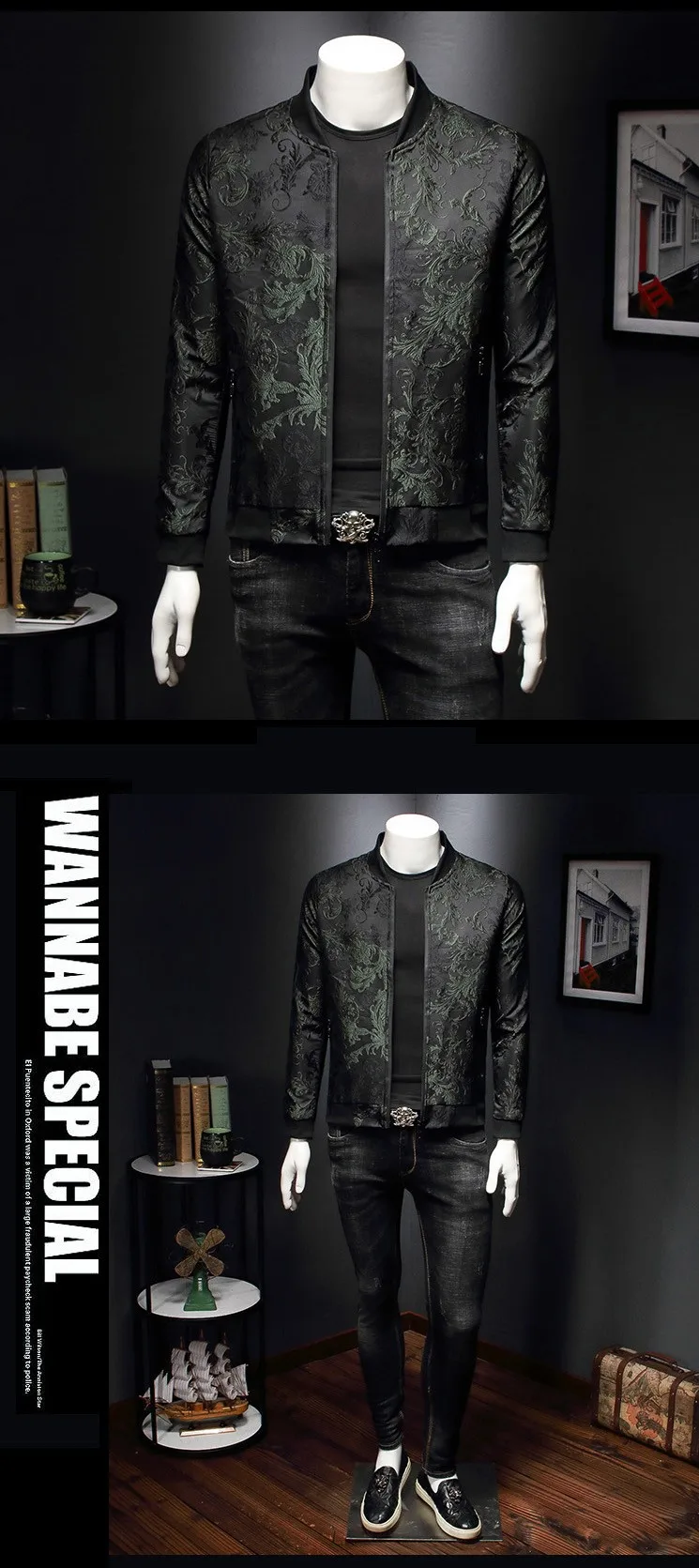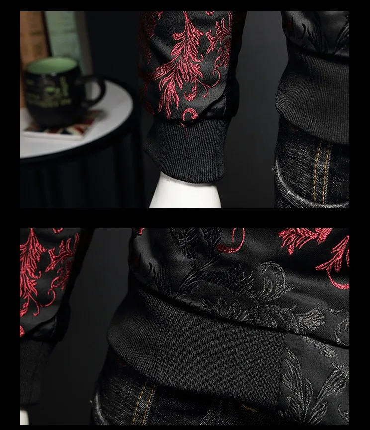Куртка-бомбер мужская с цветочной вышивкой, стильная верхняя одежда на молнии, с карманами, приталенный силуэт