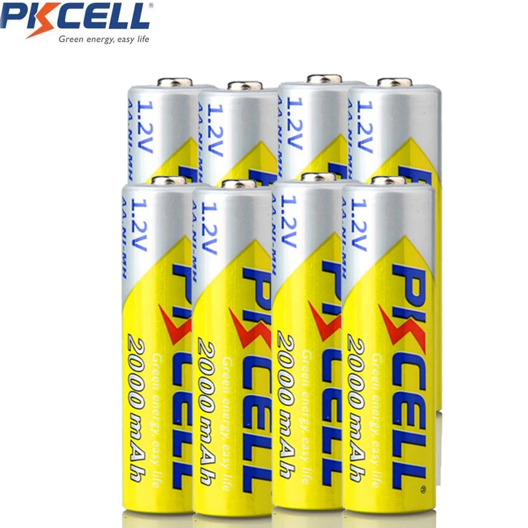 8 шт.лот, аккумуляторные батареи PKCELL AA Ni-MH, 2 А, 2000 мАч, 1,2 в, AA, с зарядным устройством для NIMH аккумуляторов AAAAA