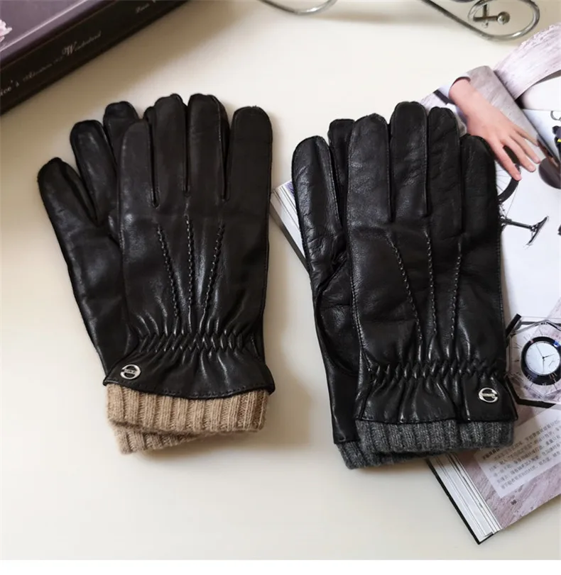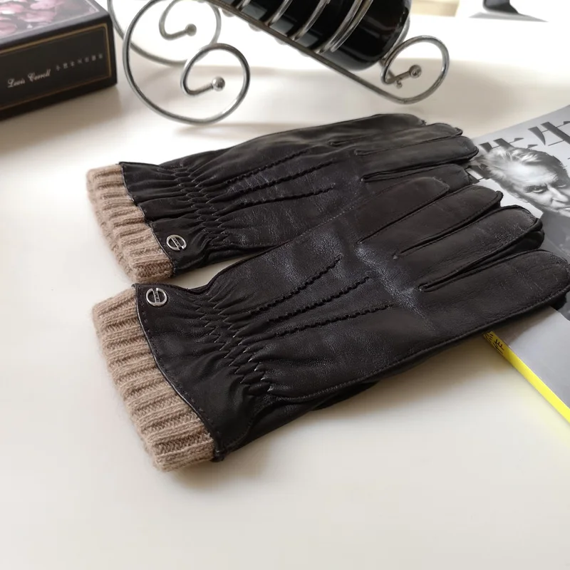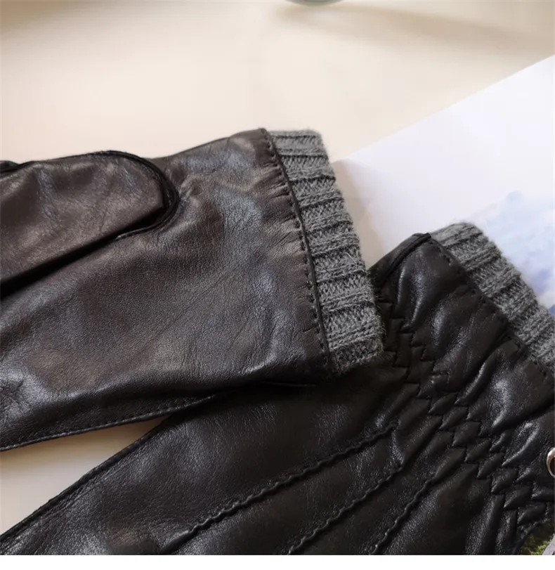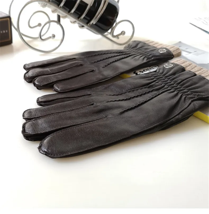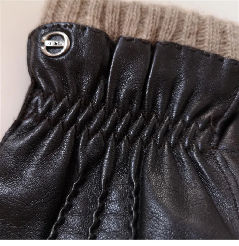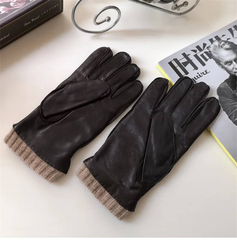 Перчатки мужские из натуральной кожи, кашемировые, трикотажные, зимние, EM006WR
