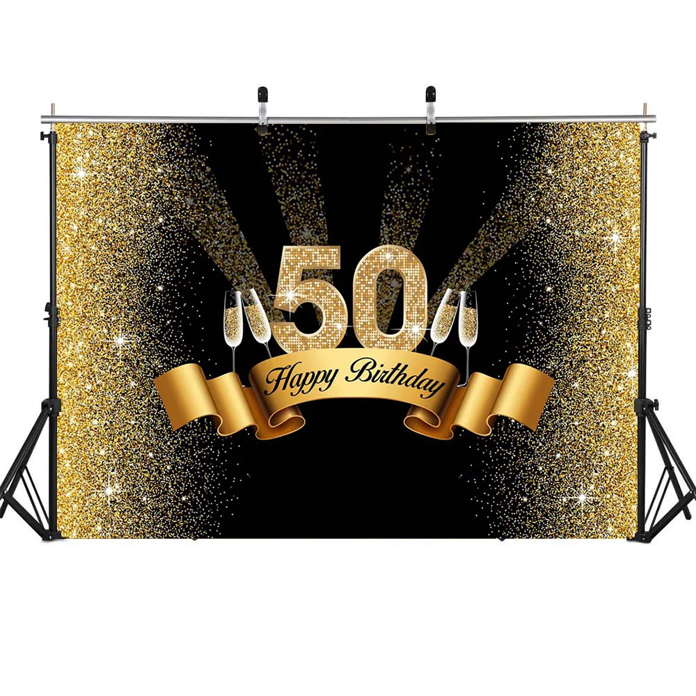 Золотистый и черный фон для фотосъемки на 50-й день рождения с золотистыми блестящими бриллиантами для взрослых Блестящий Фон декор для вечевечерние в честь пятилетнего возраста
