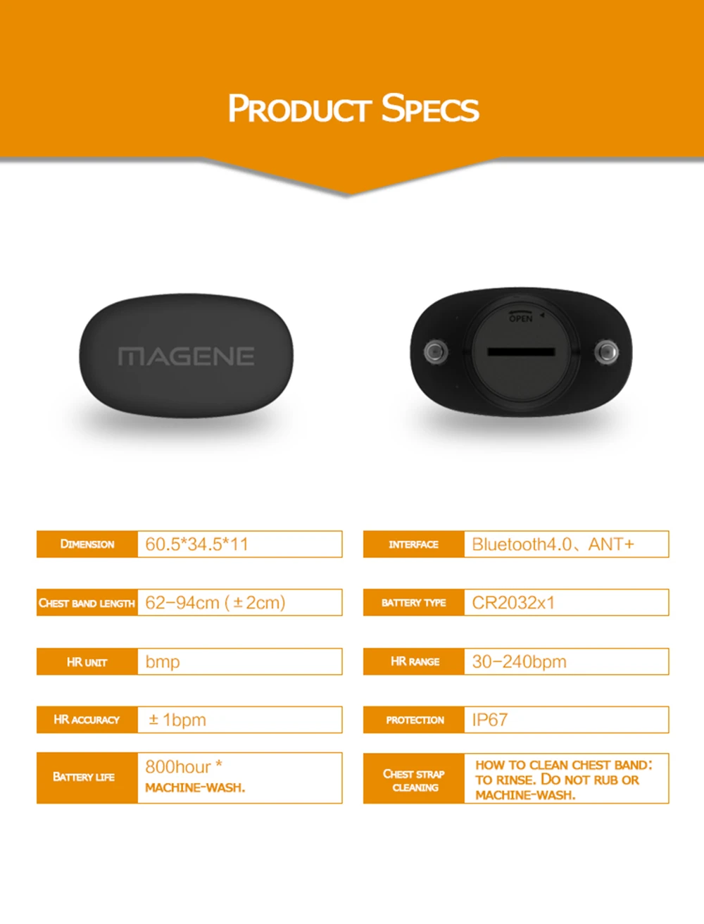 Новейший монитор сердечного ритма MAGENE H64 ANT + Bluetooth