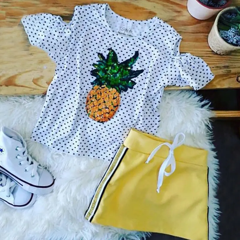 От 1 до 6 лет комплекты одежды для маленьких девочек, футболка с принтом ананасов и блестками, юбка, наряд