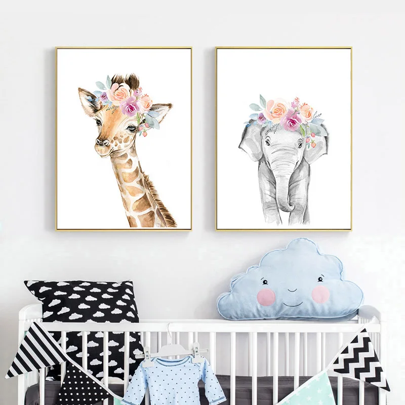 Цветочное сафари животное лев картина слона на холсте постер для детской комнаты печать настенные картины в скандинавском стиле для детской спальни