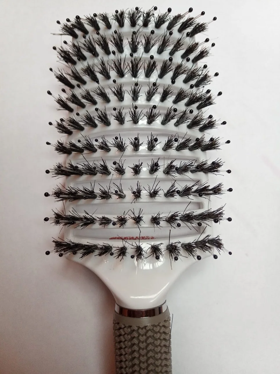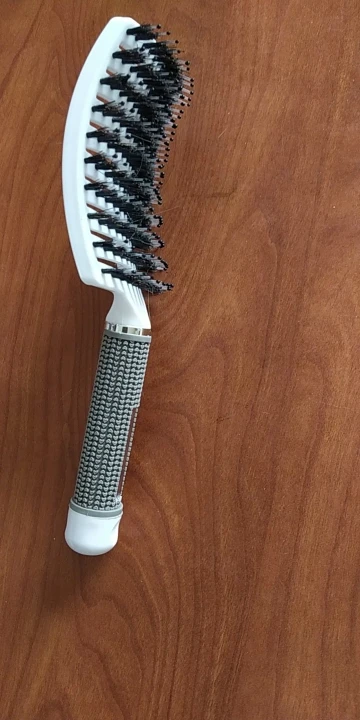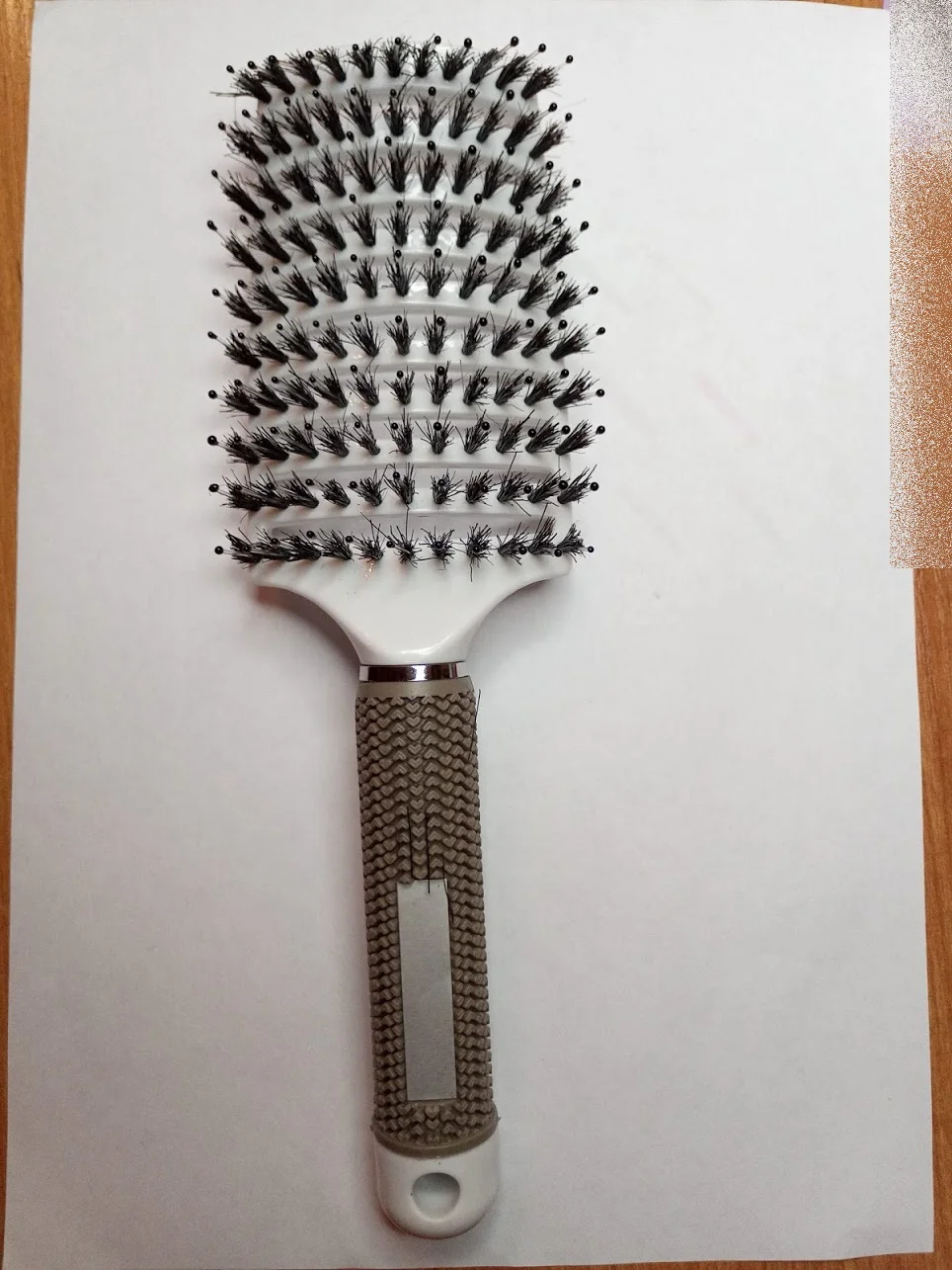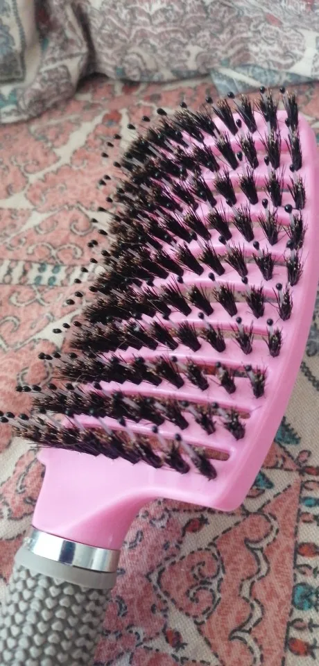 Щетина и Расчёска с нейлоновой щетиной головки: гребень изготовлен из щетины и нейлона, поэтому его легче чистить.Изогнутая гребень: изогнутый дизайн, элегантный внешний вид.Функция массажа: круглые зубы массируют голову, способствуя росту волос.Мягкая ручка: ручка изготовлена из резины, более мягкая и удобная.Нескользящий дизайн: нескользящий дизайн позволяет удобно держать его в руке.