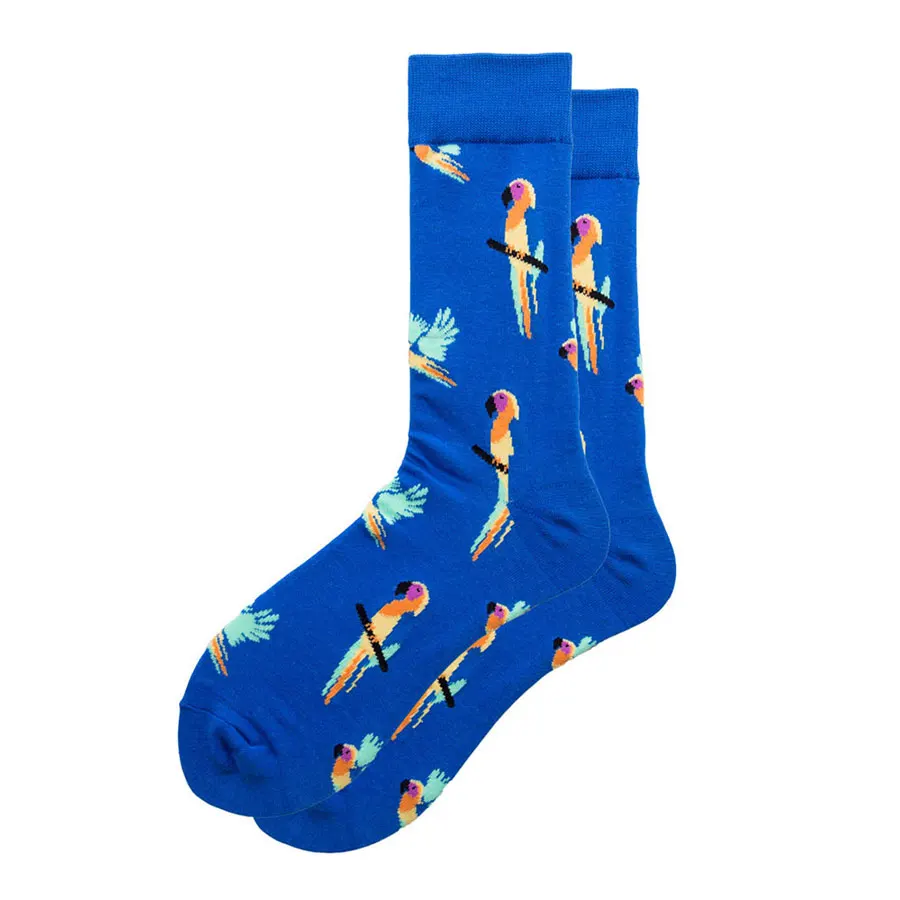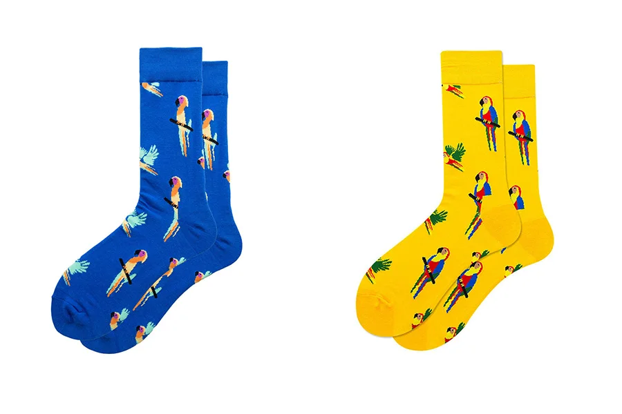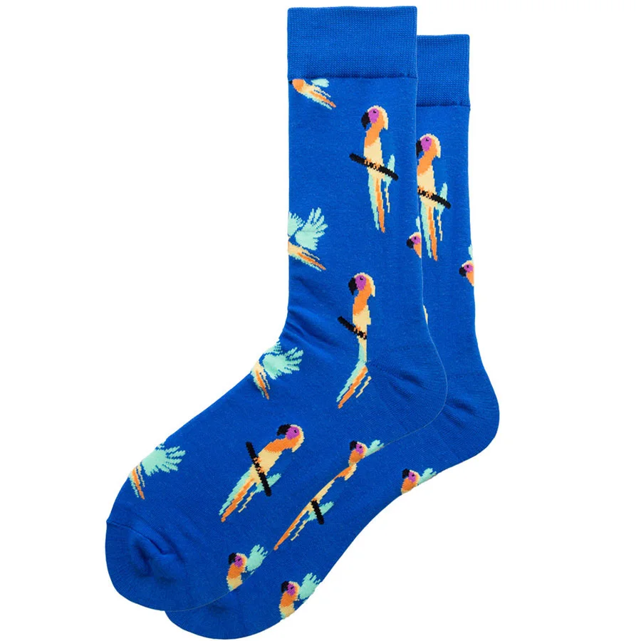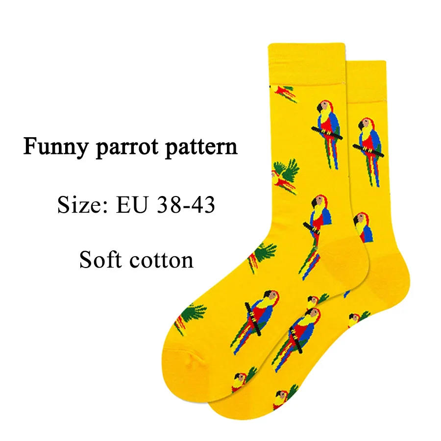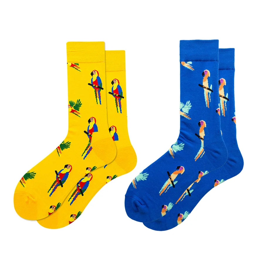 Забавный попугай хлопок Мужские матросские носки повседневное Happy синего и желтого цвета весенние, летние носки осень Стиль 2 предмета в упаковке