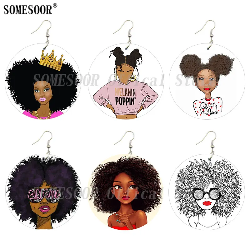 Деревянные серьги-подвески SOMESOOR, с изображением меланина, женск...