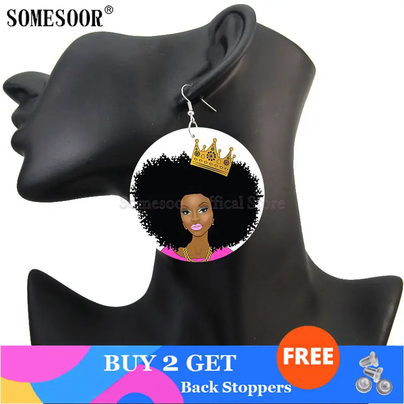 Деревянные висячие серьги SOMESOOR, с меланином, Черная мама, корол...