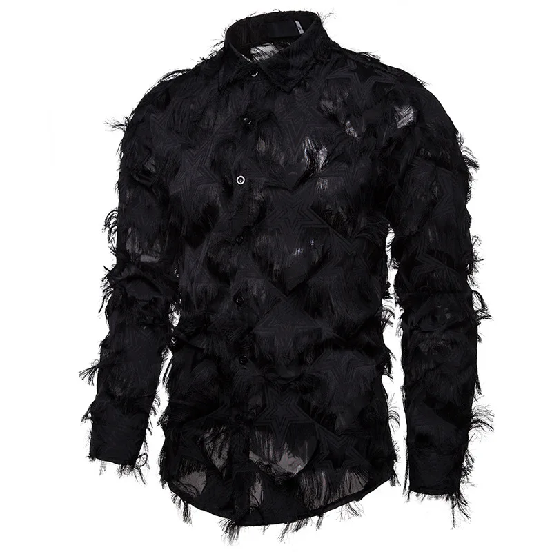 Сексуальная черная Клубная рубашка с перьями и звездами для мужчин 2022, рубашка для сцены, выпускного вечера, мужские вечерние рубашки, рубашки для выпускного вечера, Мужская сорочка