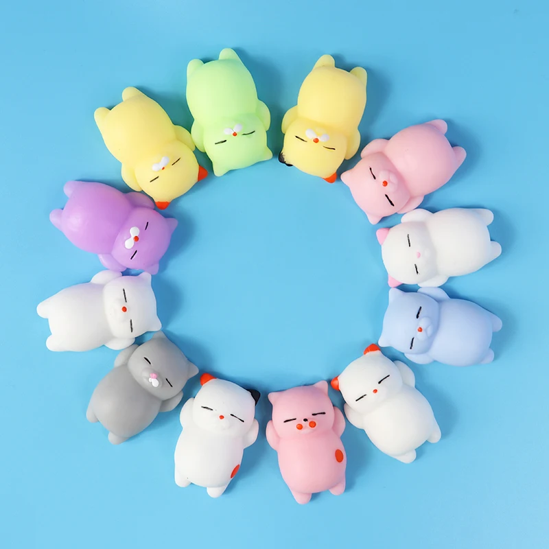 4 шт.лот, миниатюрный мягкий мячик для кошек, антистрессовый мячик, Сжимаемый мочи, реагирующий на расцвет, мягкая липкая игрушка для снятия стресса, забавная игрушка Escuishi