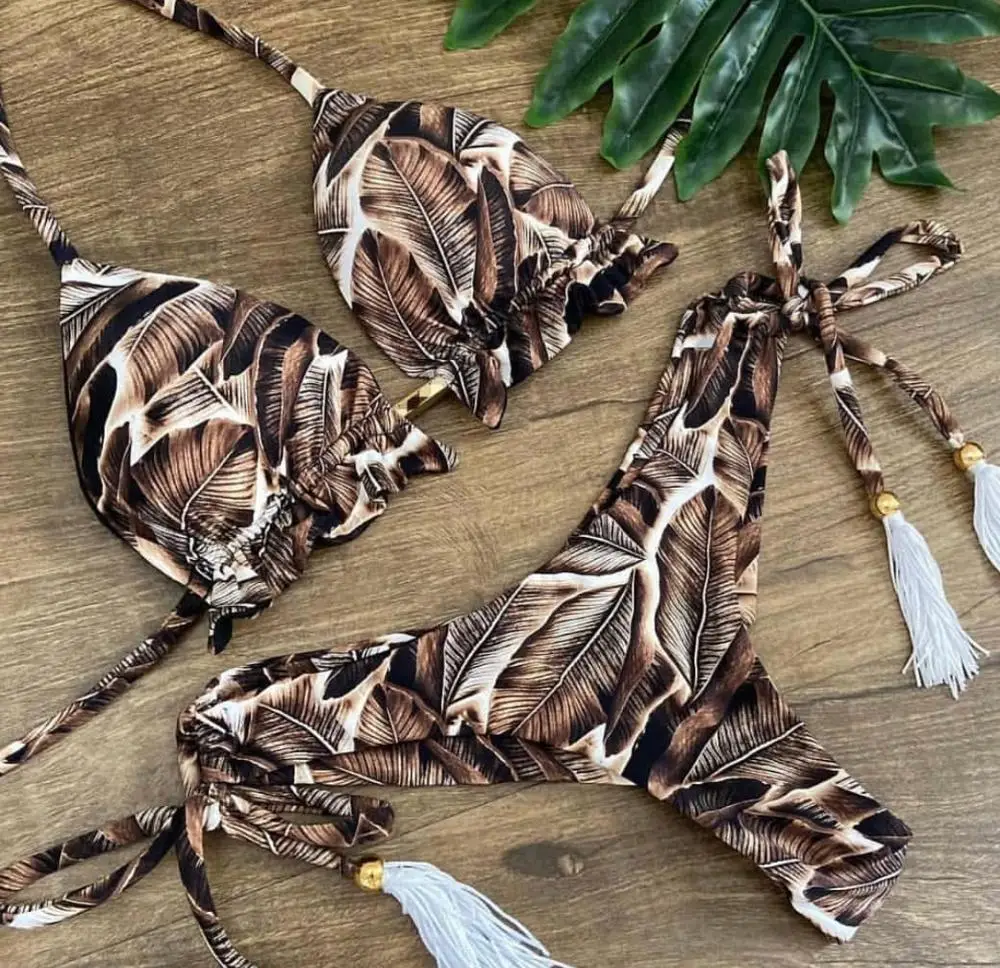 Сексуальный купальник-бикини с принтом 0, летний купальник со шнуро...