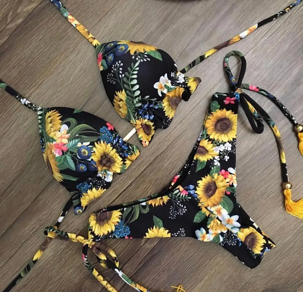 2020 Новый размера плюс Цветочный принт комплект бикини, купальник,...