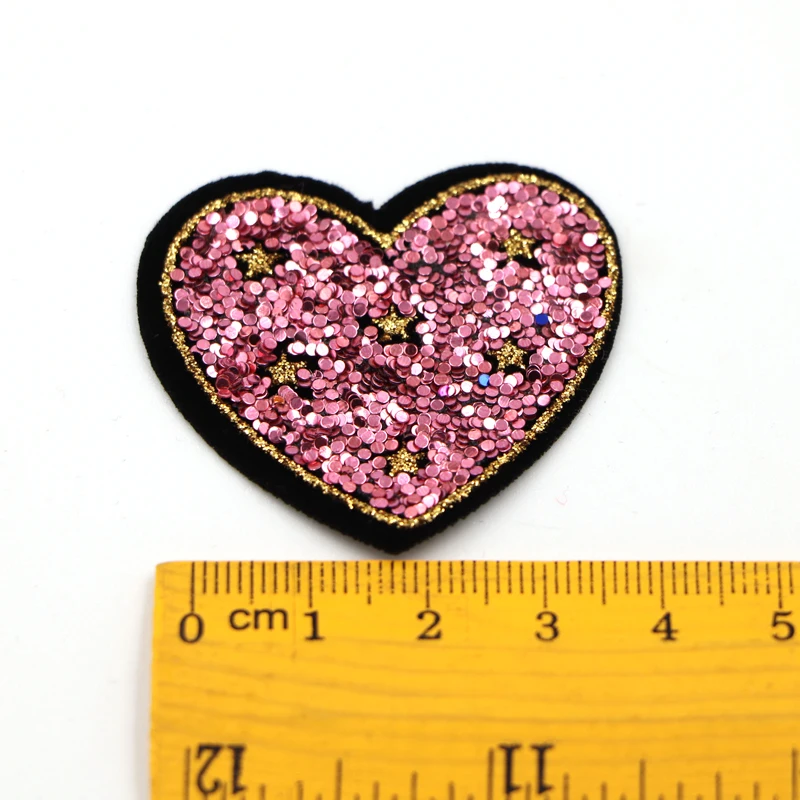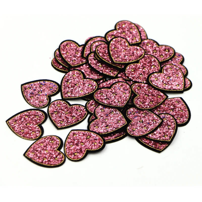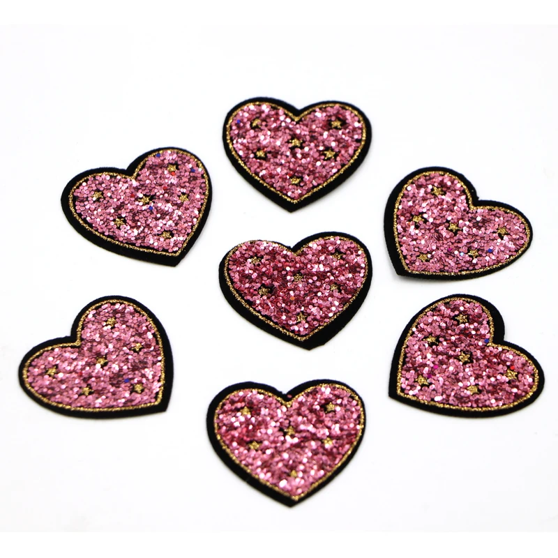Нашивки для одежды с блестками в виде РОЗОВОГО СЕРДЦА, аппликация для шитья, термоклейкая нашивка для рубашки, вуали, обуви, сумок, шляп, аксессуары для рукоделия с клеем, 10 шт.лот