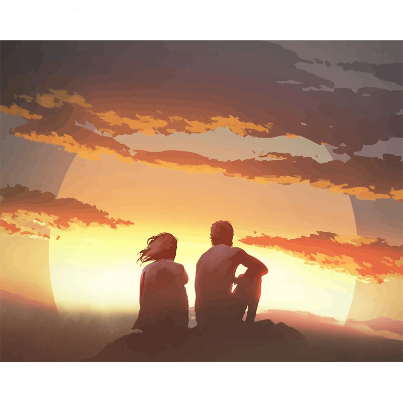 GATYZTORY DIY живопись по номерам закат пара картина рисунок на холсте Ручная роспись маслом уникальный подарок на заказ фото