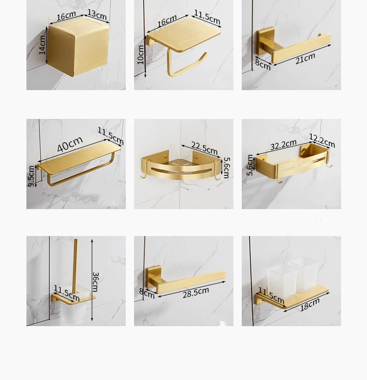 Этот набор оборудования для ванной комнаты изготовлен из алюминиевого сплава с матовой поверхностью, которая является высококачественной и красивой. Все настенные продукты снабжены клеем без гвоздей и винтами, вы можете выбрать, чтобы пробить установку или нет. В этой серии много товаров. Если у вас есть какие-либо вопросы, пожалуйста, свяжитесь с нами.