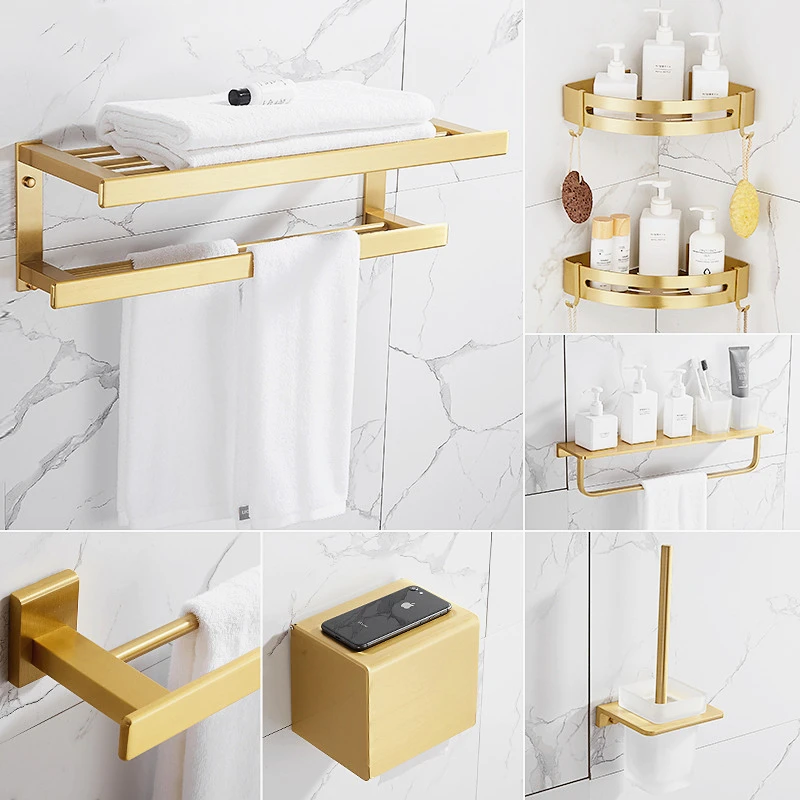 Набор аксессуаров для ванной из золотого алюминиевого сплава, держатель для туалетной бумаги, Полка для полотенец, полка для щетки, мыльница, держатель для душа, настенный крючок