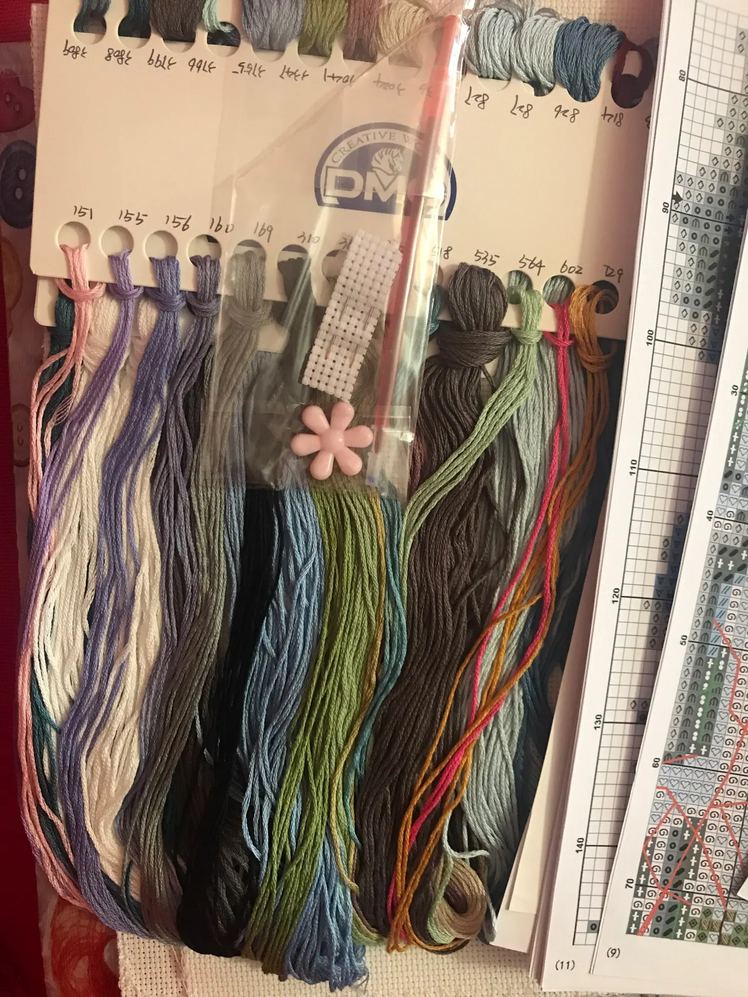 Нити 1 нить = 6 нитей Посылка включает в себя 100% хлопковая нить, холст Aida, иглы, бумажная Таблица (Инструкция на английском языке, цветная печать, размер А4/страница)