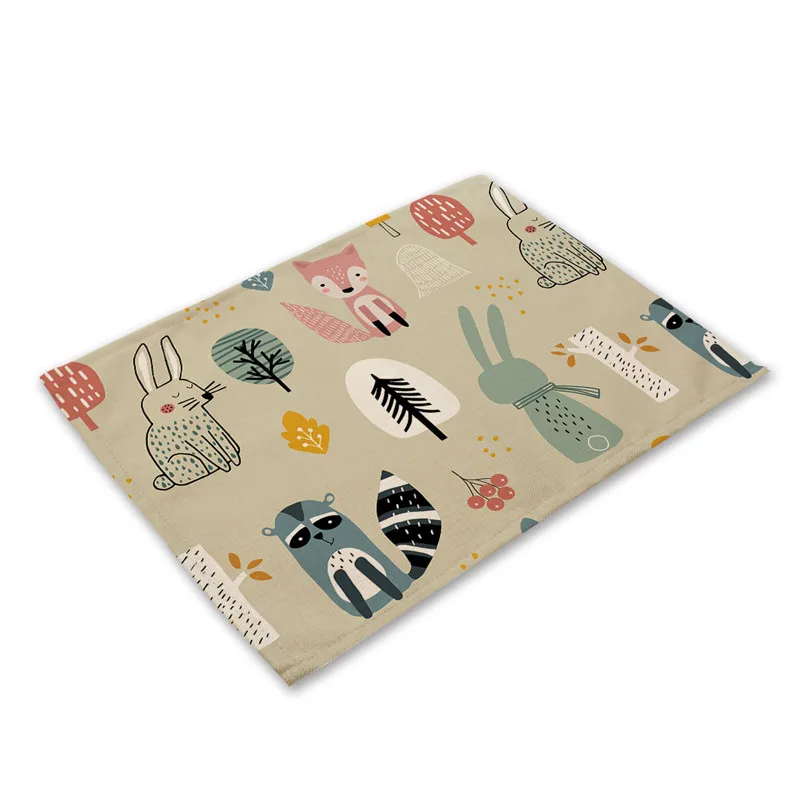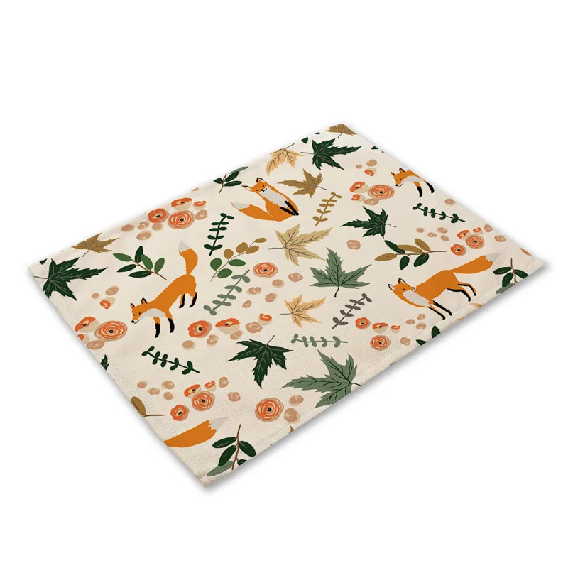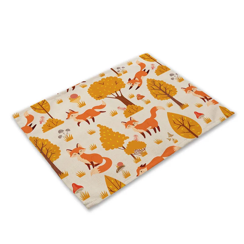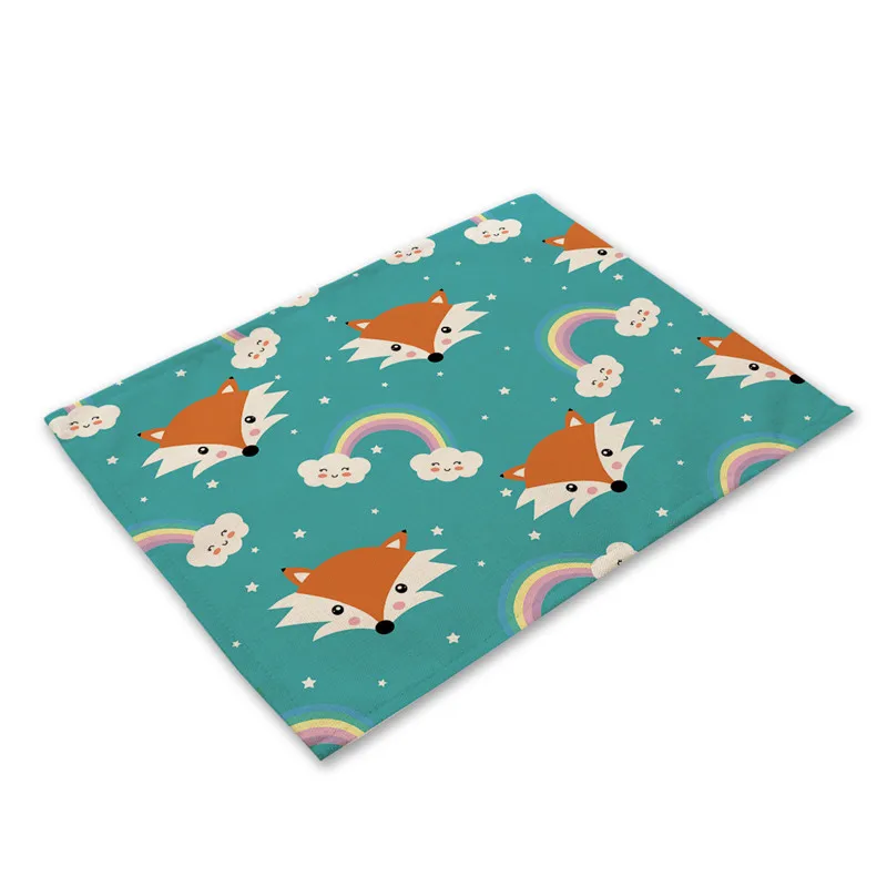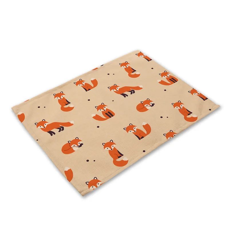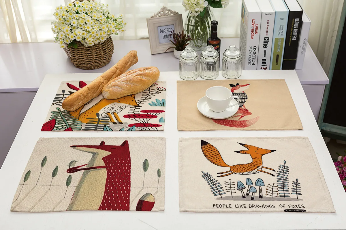 Подстилка для обеденного стола с рисунком лисы, мультяшный коврик для обеденного стола, подставка под чай, хлопковая льняная подстилка, кухонная чашка, коврики