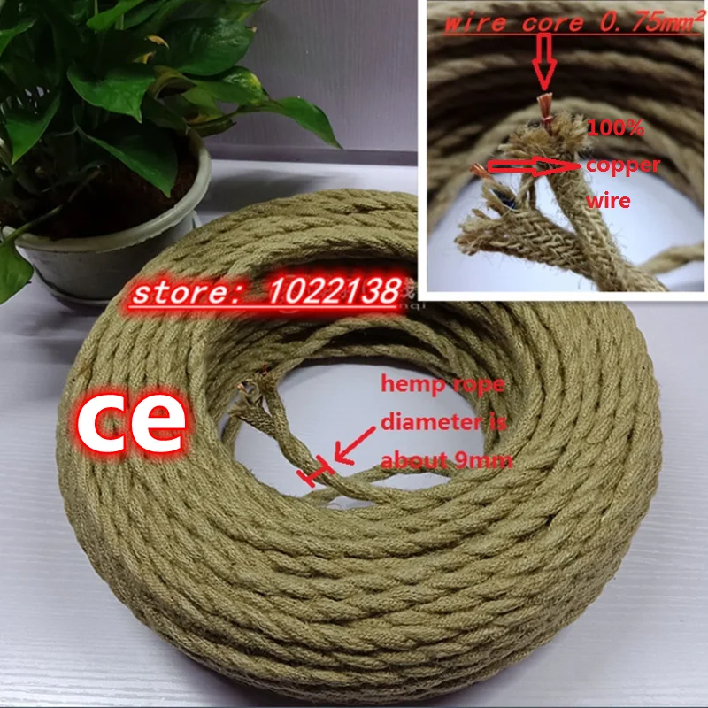 Винтажный пеньковый Канат, плетеный кабель в стиле ретро для светильников, 3 м, 5 м, 10 м, 2 ядра3 ядра, 0,75 мм, 2 винтажных витого кабеля