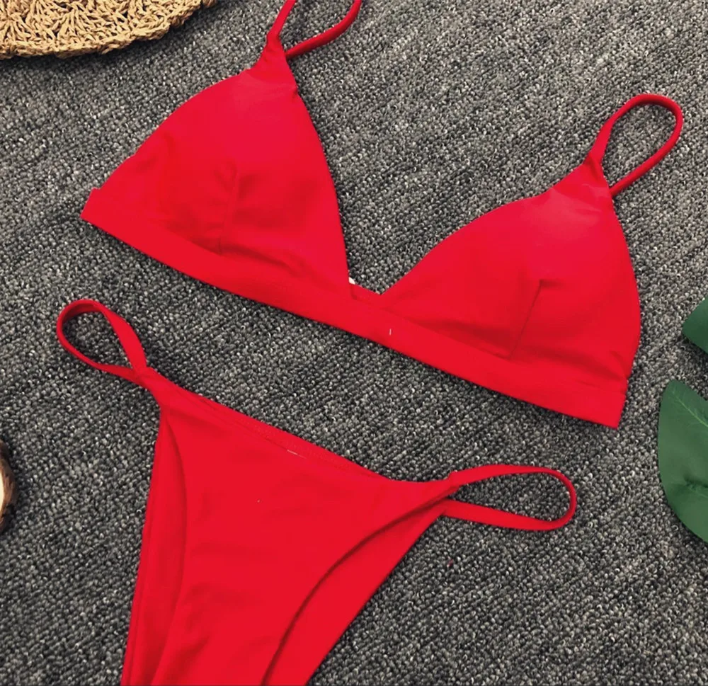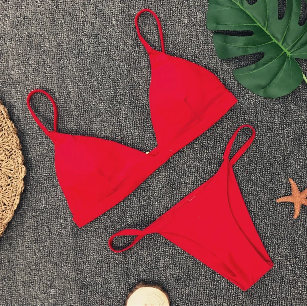 Сексуальный комплект бикини с пуш-ап, однотонный купальник, стринги...