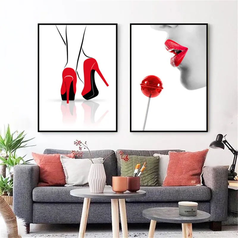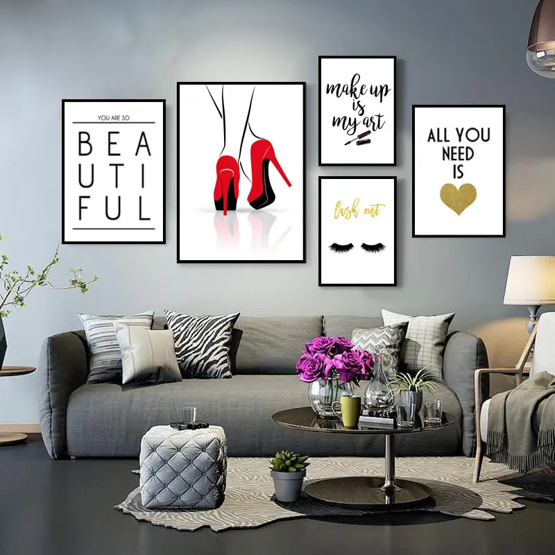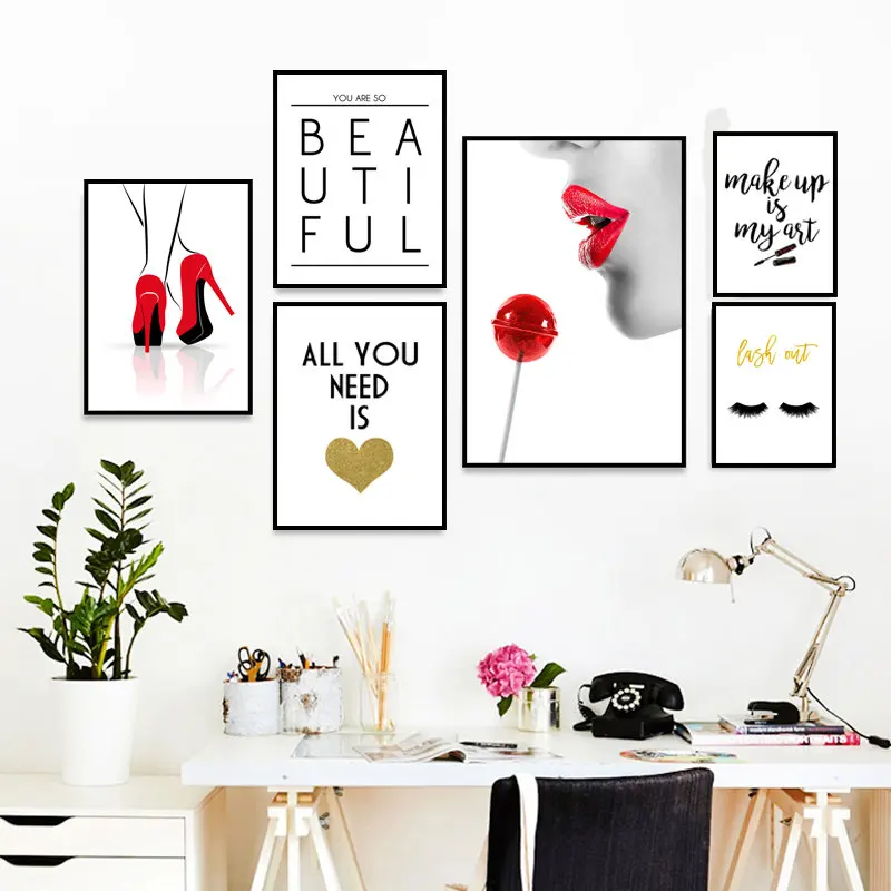 Модный постер для макияжа с ресничками и губами, распечатанный на холсте, картина на стену, современная девушка, комнатное украшение, HD2781
