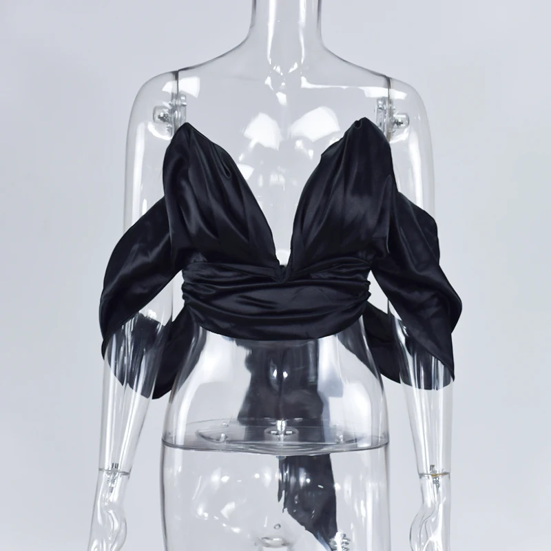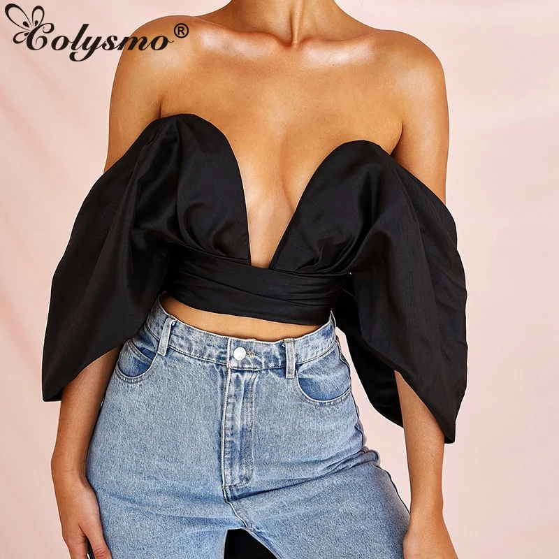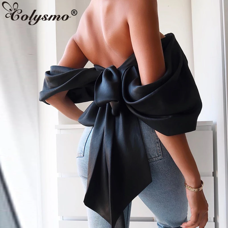Женский Атласный топ Colysmo, короткий топ черного цвета, с открытыми плечами и глубоким V-образным вырезом, винтажный топ-бюстье, лето 2020