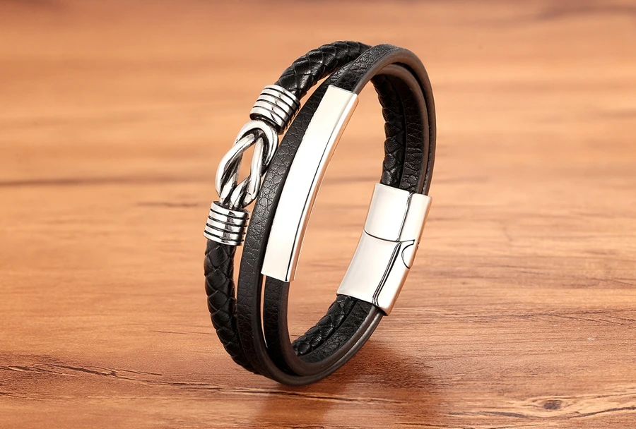 Многослойная кожаная комбинация, маленькие аксессуары, мужские брас...