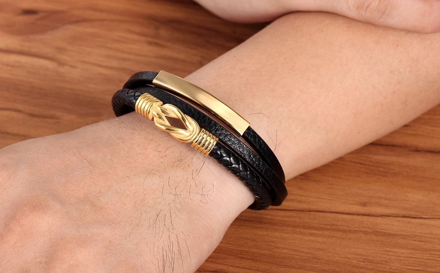 Многослойный браслет ручной работы из нержавеющей стали, золотого и...