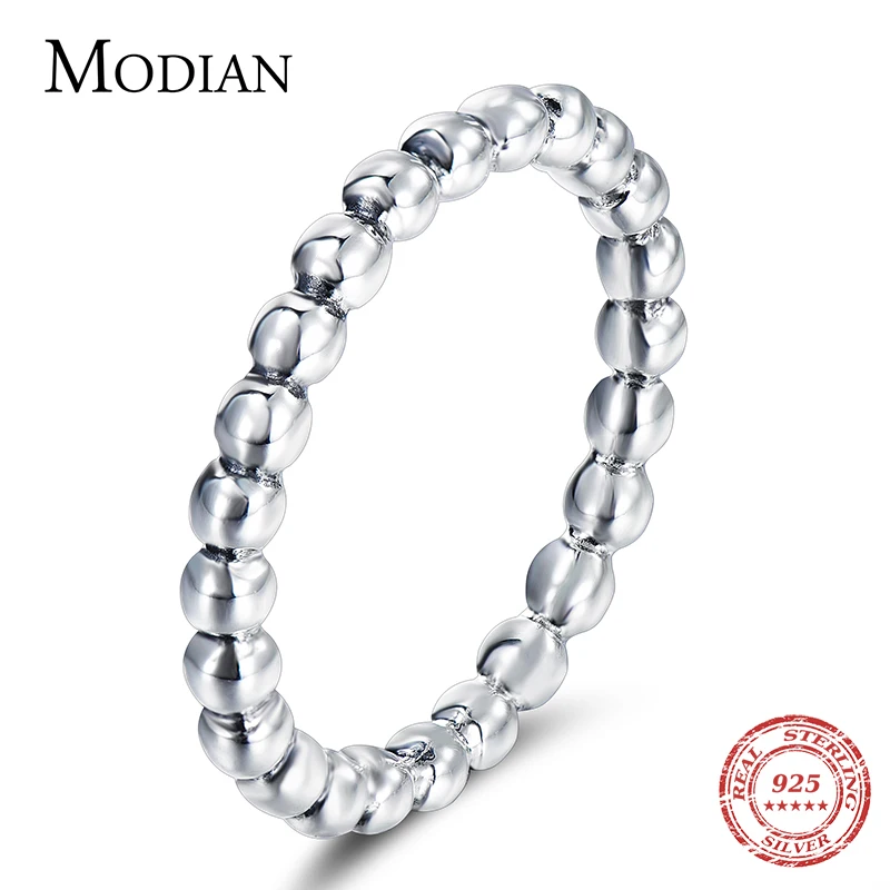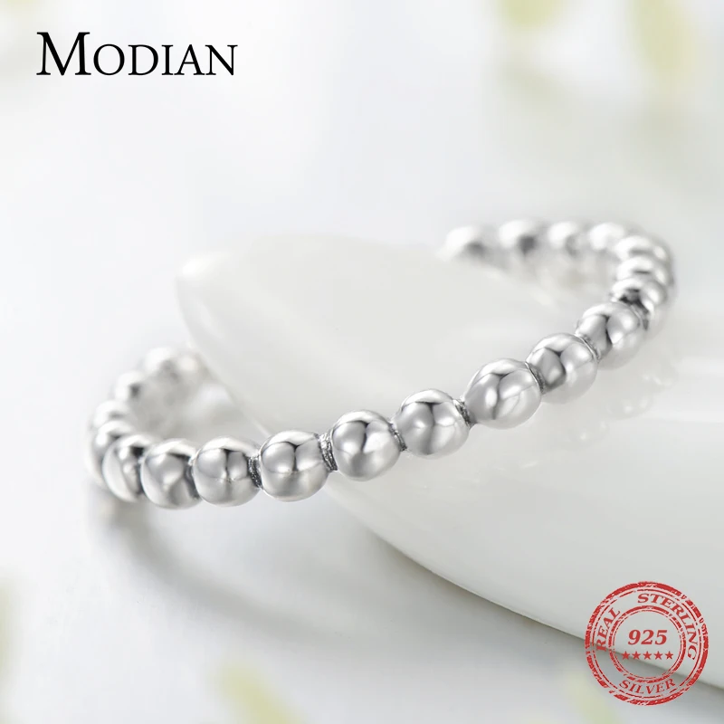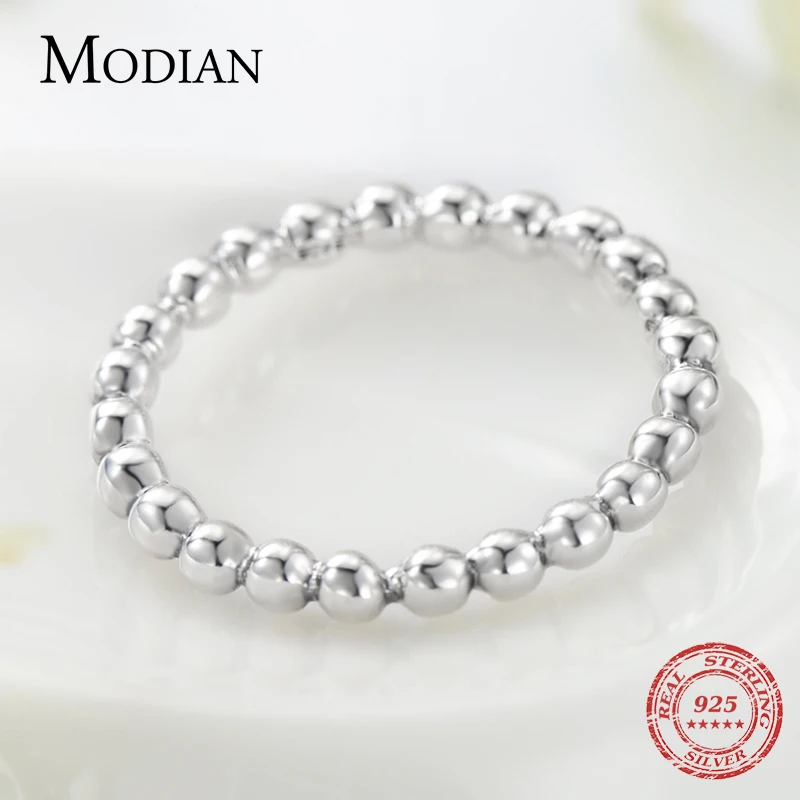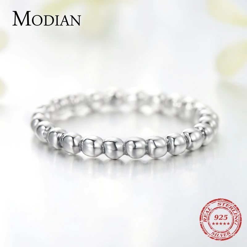 Женское кольцо Modian в минималистическом стиле, изящное обручальное кольцо на палец из настоящего серебра 925 пробы с бусинами, украшение для свадьбы